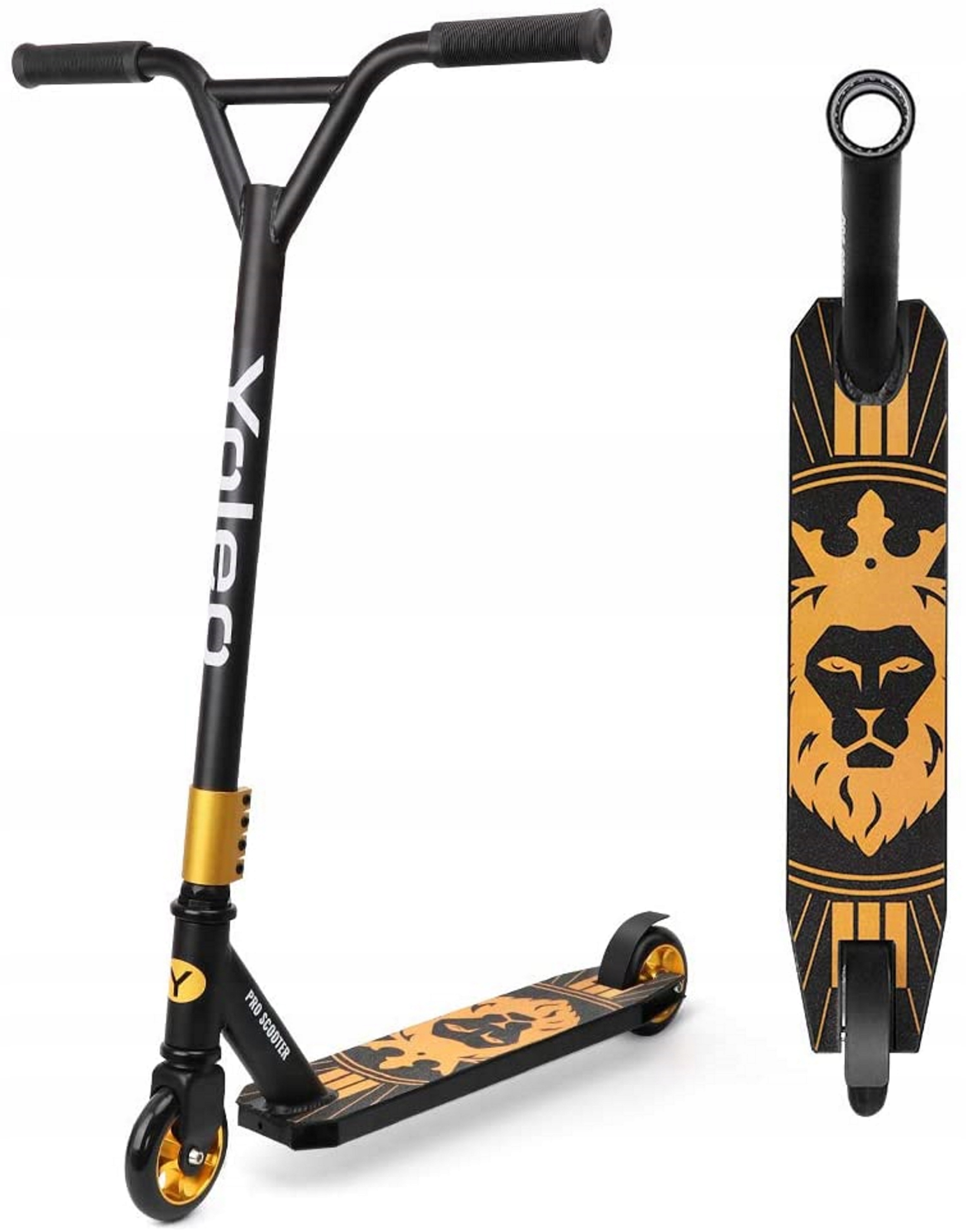 - Посилене Y-подібне кермо, яке обертається навколо власної осі з профільованою гумовою ручкою TPR, забезпечує краще зчеплення та, тому дозволяє точно виконувати трюки.
