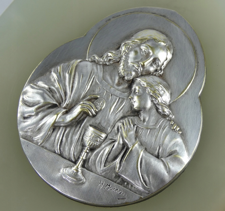 Образ Ісуса Христа з посрібленої латуні - підпис.