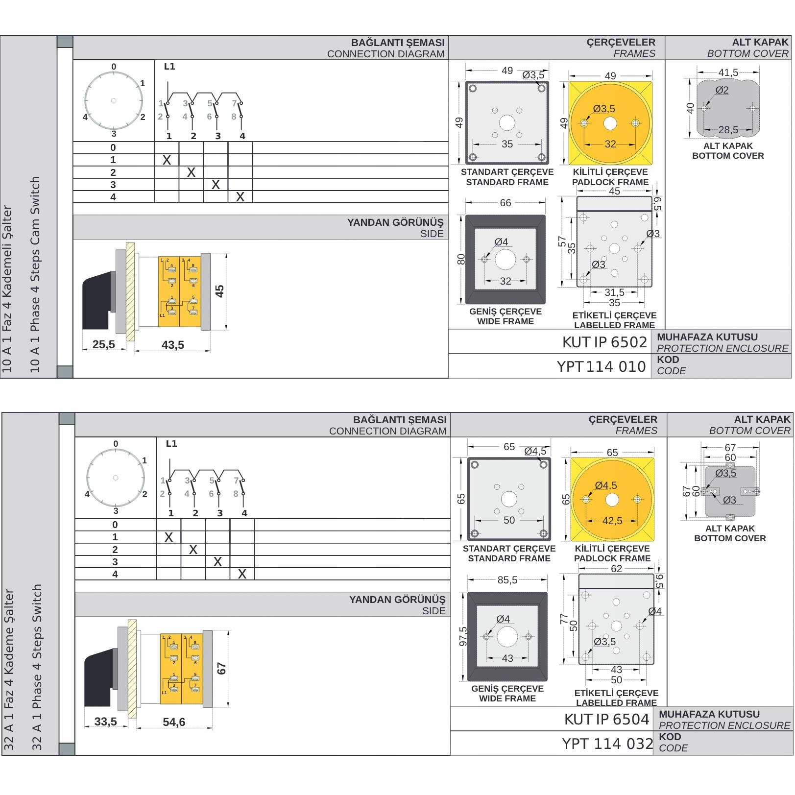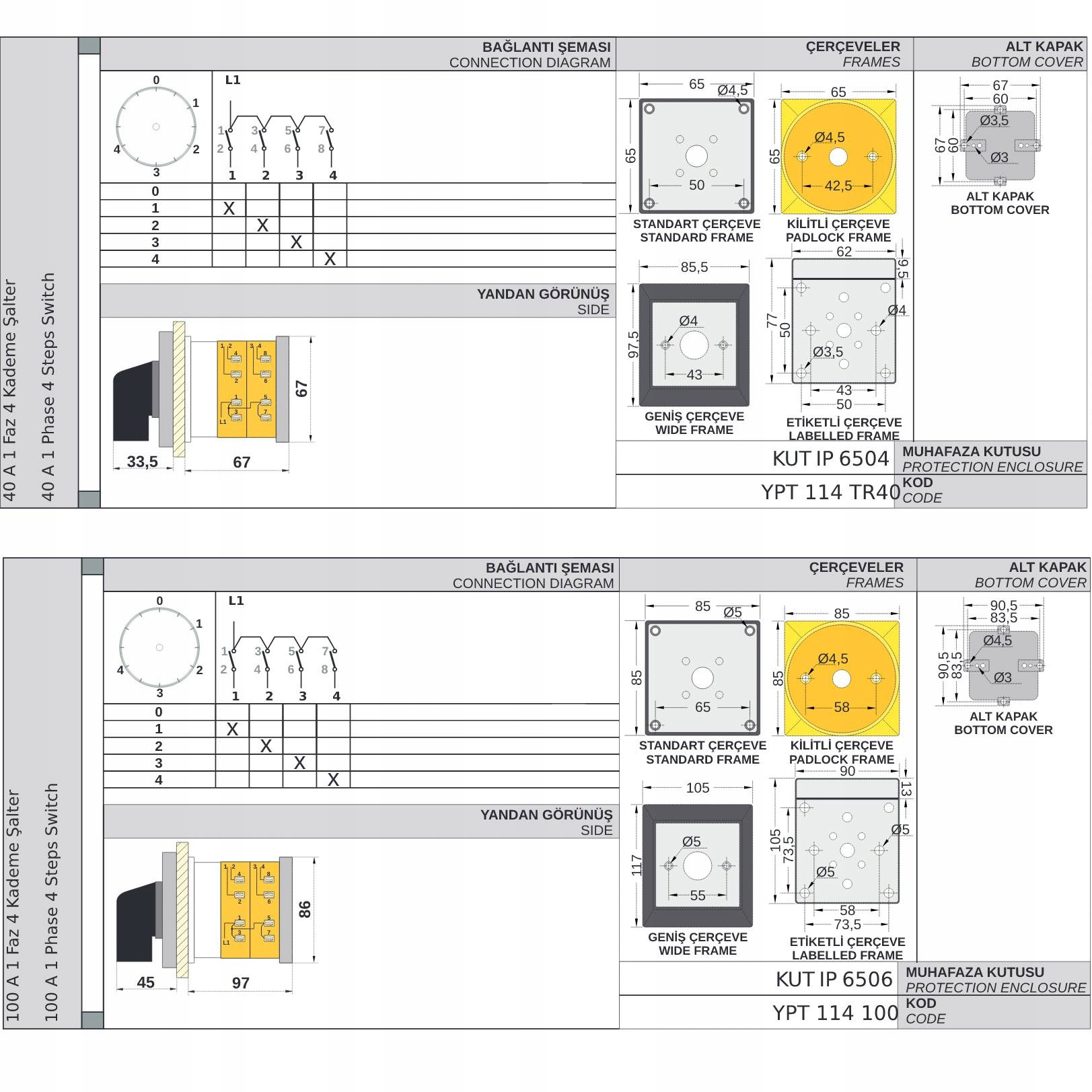 Кроковий (ступінчастий) перемикач 0-1-2-3-4, перемикач поворотний, 1-2 полюси, 10-160А, YPT114, виробник OPAŞ (Туреччина)