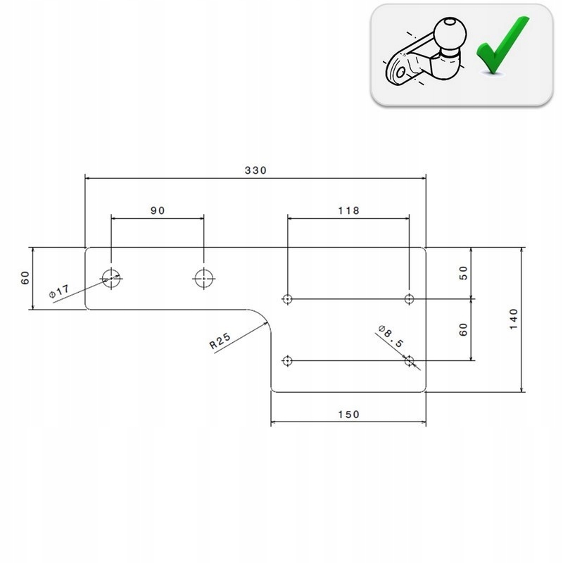 - Пластина кріплення фаркопа з відстанню між отворами 90 мм