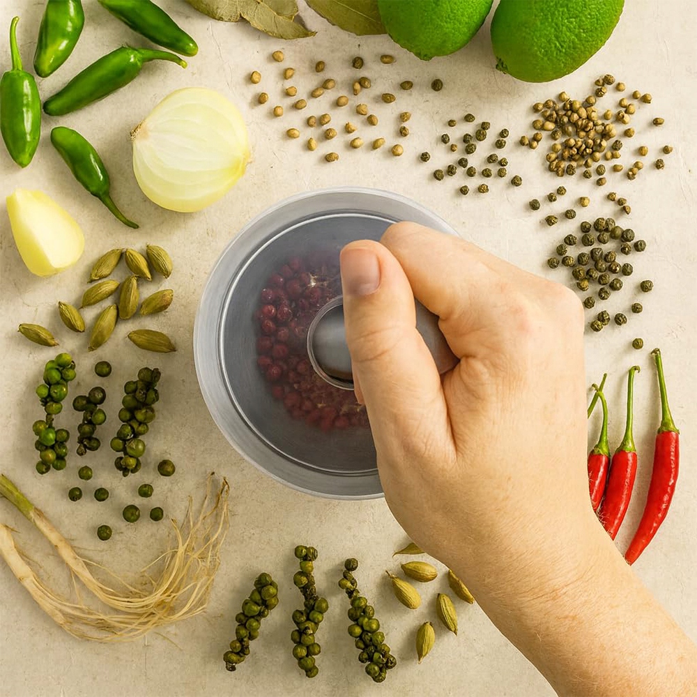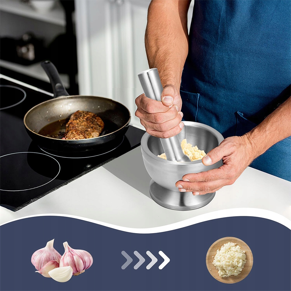 Тоді наша високоякісна ступка з нержавіючої сталі з товкачиком і кришкою — саме те, що вам потрібно!