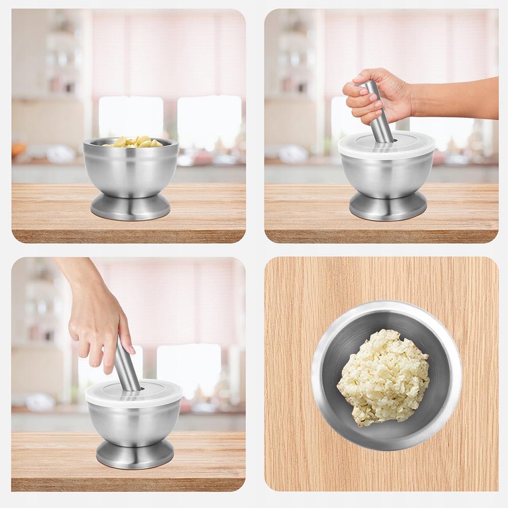 Ступка з товкачем з нержавіючої сталі, маленька ступка з кришкою та неслизьким дном