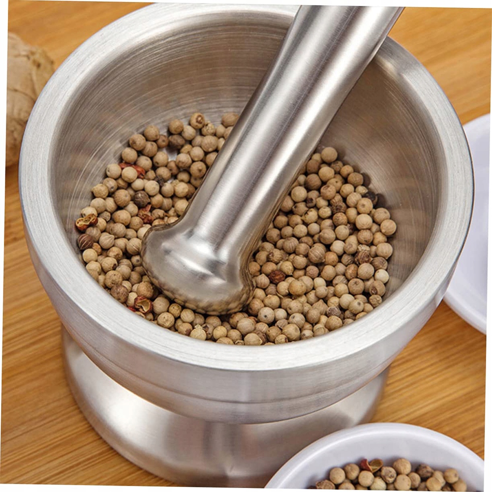 Ступка з нержавіючої сталі з товкачиком і кришкою, тверда ступка для спецій для кухні, міцний подрібнювач для трав, протиковзкий подрібнювач для трав і спецій, подрібнювач для таблеток, ступка для таблеток, кухонний помічник