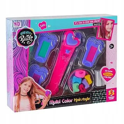 Набір фарбування волосся - це фантастичний набір, призначений для дівчат, які хочуть створити унікальний вплив на волосся. Просто розмістіть кольоровий картридж у ручки пристрою і нанесіть колір на волосся, щоб отримати барвисті моменти. Мистецтво укладання волосся - це під рукою. Дівчата можуть створювати барвисті основні моменти, коси або просто розфарбувати кінці волосся. Кінцевий результат залежить від вашої уяви та творчості. Набір ідеально підходить для гри в перукарню!