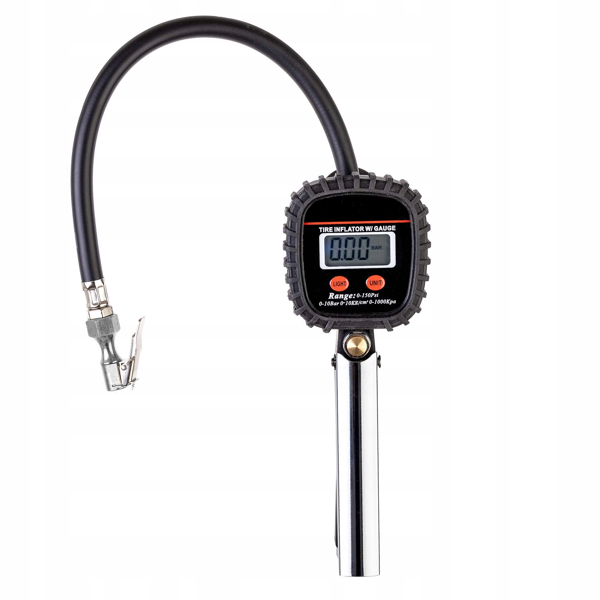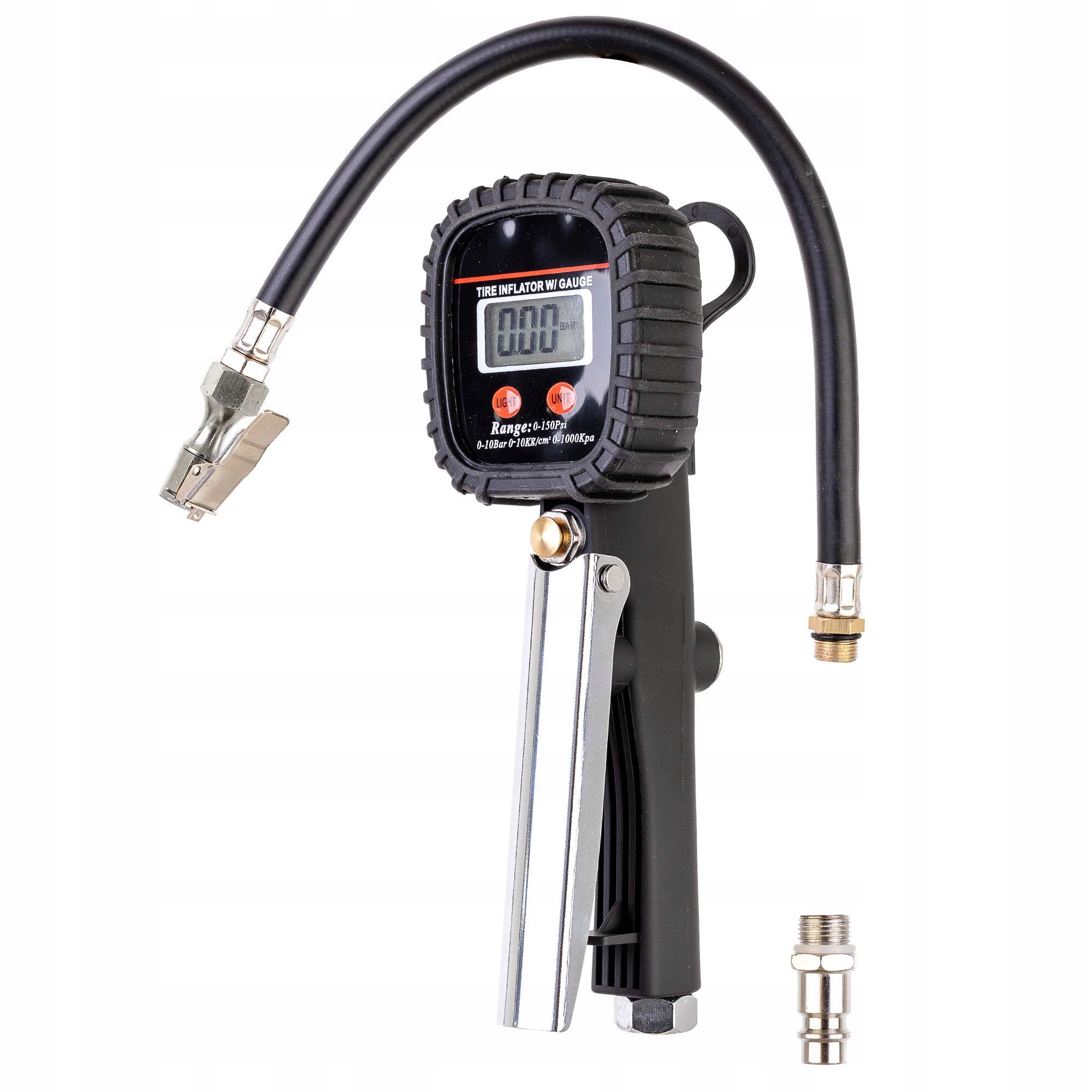 Пістолет для накачування шин, оснащений чітким цифровим дисплеєм. Цифровий манометр забезпечує більшу довговічність і зручність, ніж аналогова версія.