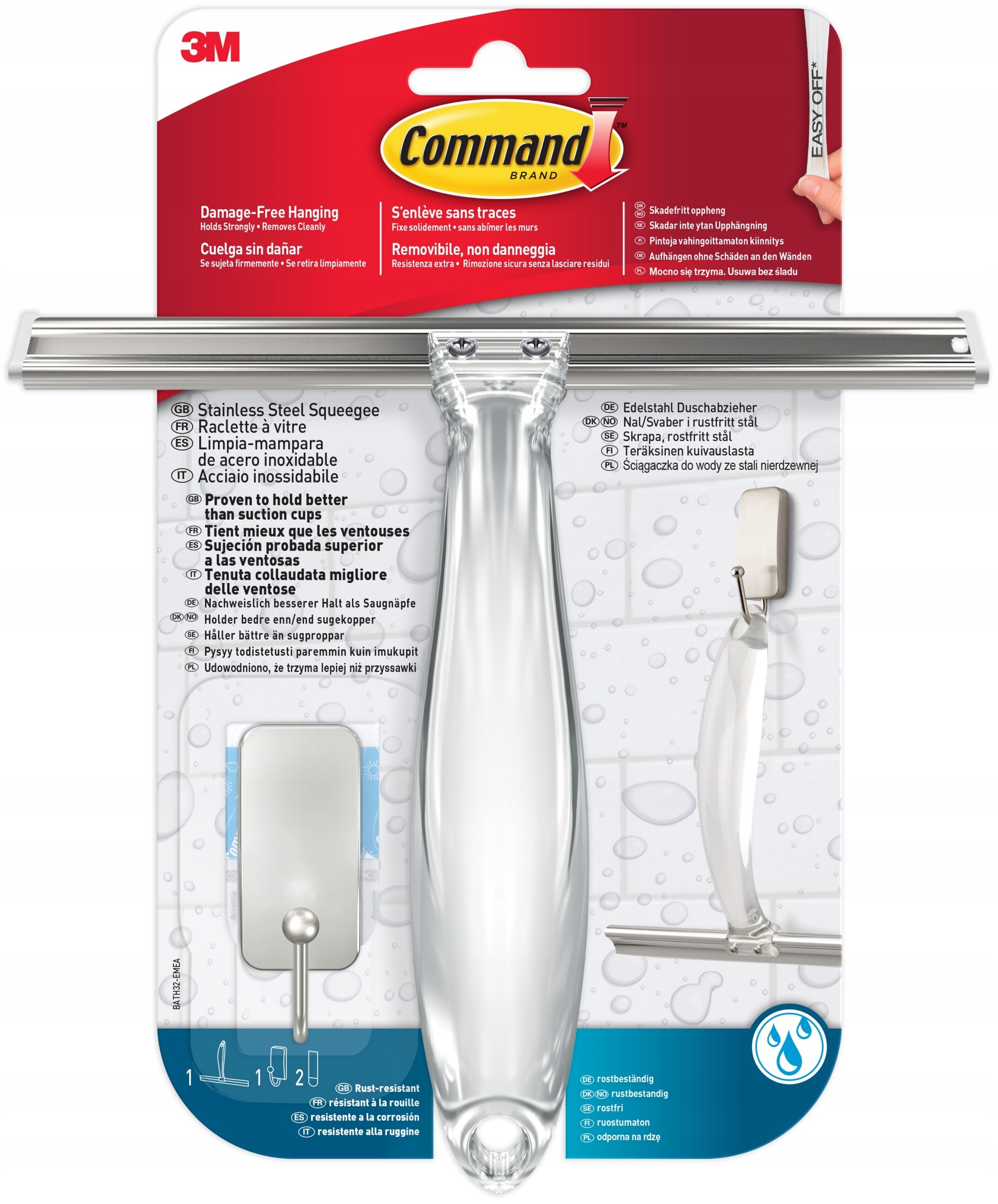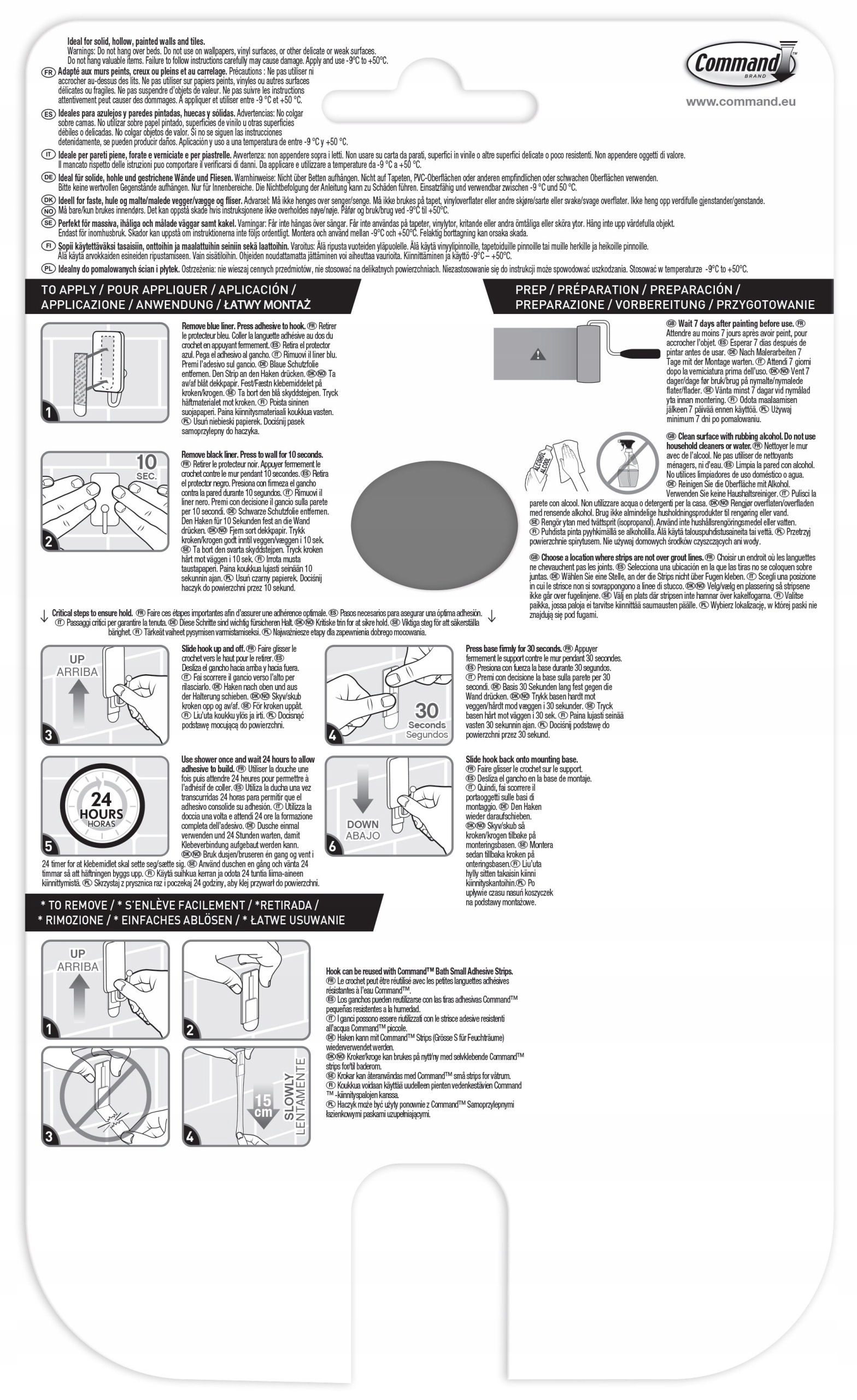 Гачок кріпиться до багатьох типів поверхонь, включаючи скло, дзеркало, плитку, скловолокно, дерево та фарбовані поверхні.