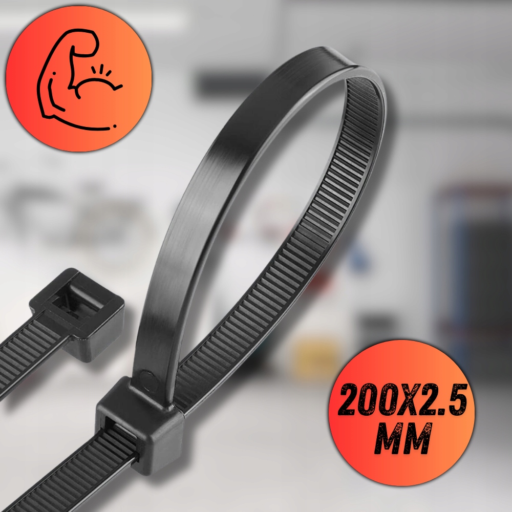 Чорні кабельні стяжки 200x2,5 мм нейлон, 100 шт.