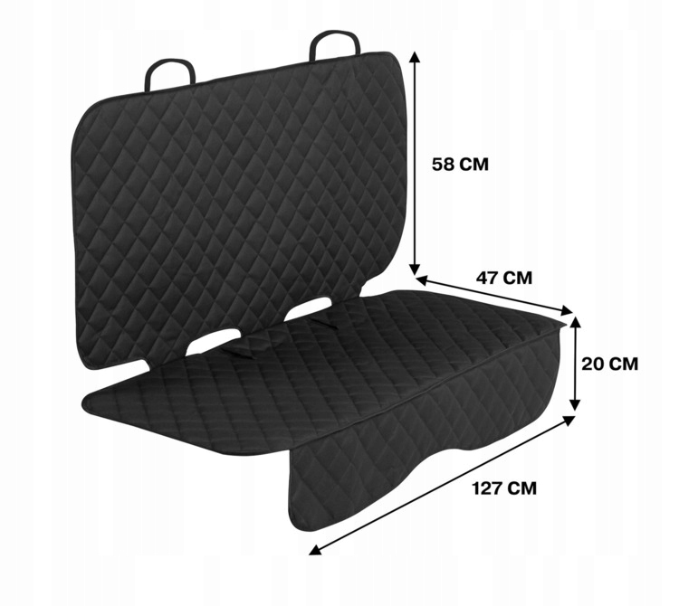 стьобаний килимок автомобіля захищає всю поверхню задніх сидінь від бруду та механічного пошкодження. Він має вирізаний для монтажу isofix та отвори для кріплення ременів. Широкі еластичні смуги для підголівника дозволяють швидко та зручно встановити. Він виготовлений з стьобаного водонепроникного матеріалу, який можна промивати. Розміри