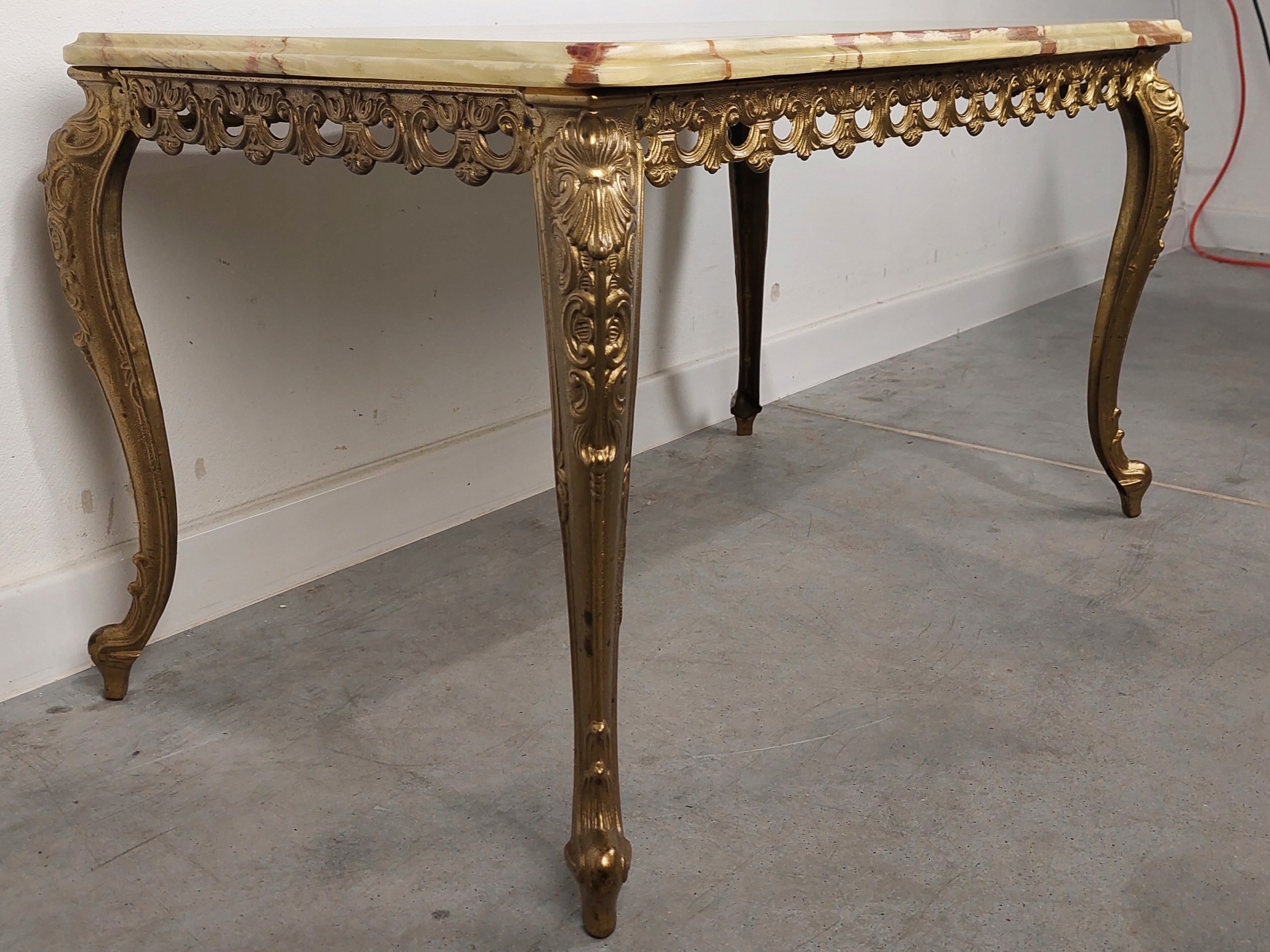 STYLOWA ŁAWA MOSIĄDZ Z ONYKSEM STOLIK KAWOWY UNIKAT ONYX MARMUR FRANCJA