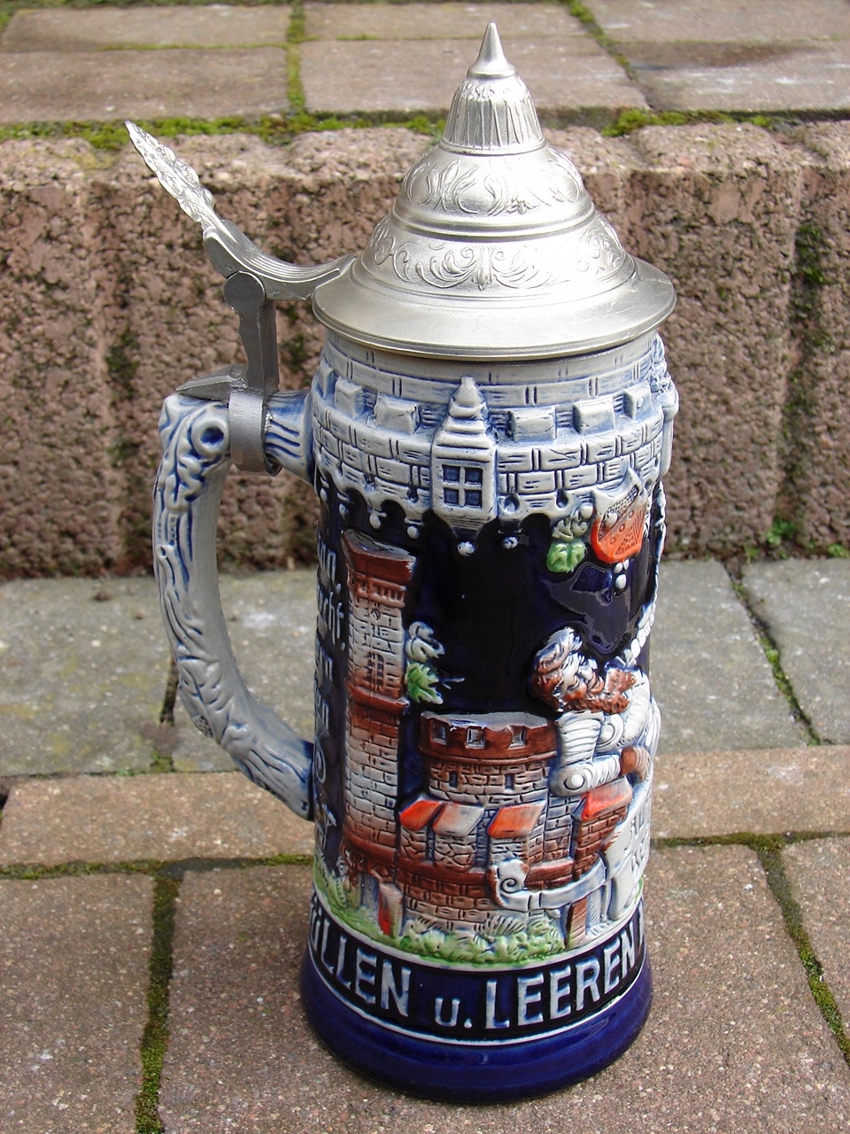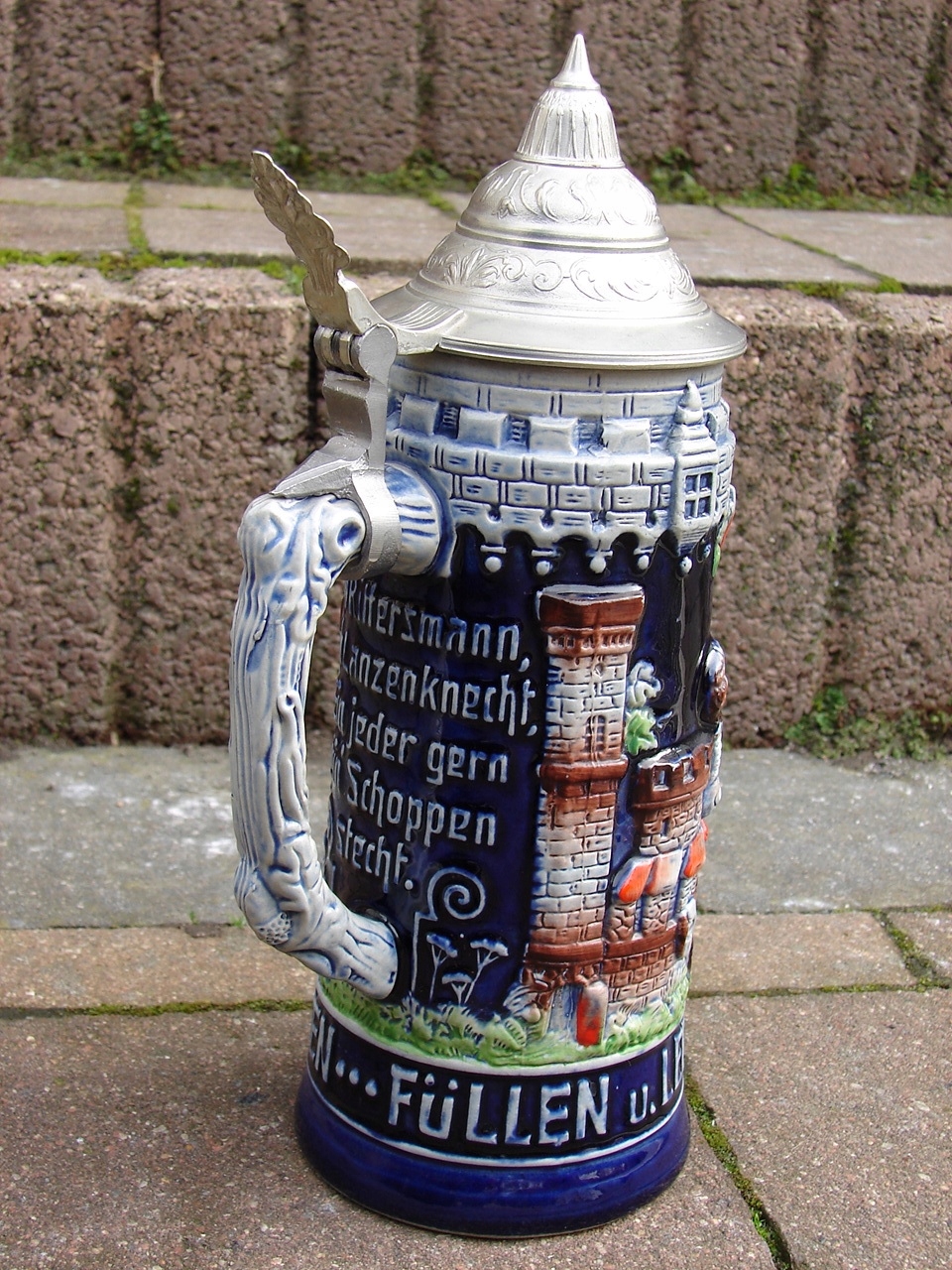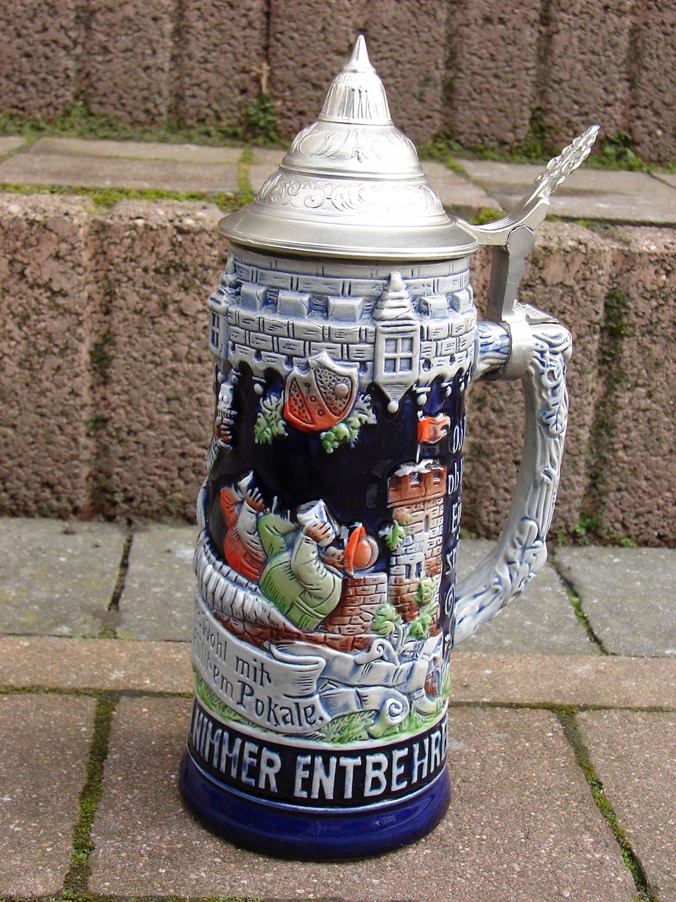Stylowy ceramiczny kufel z cynowym deklem niemieckiej firmy King