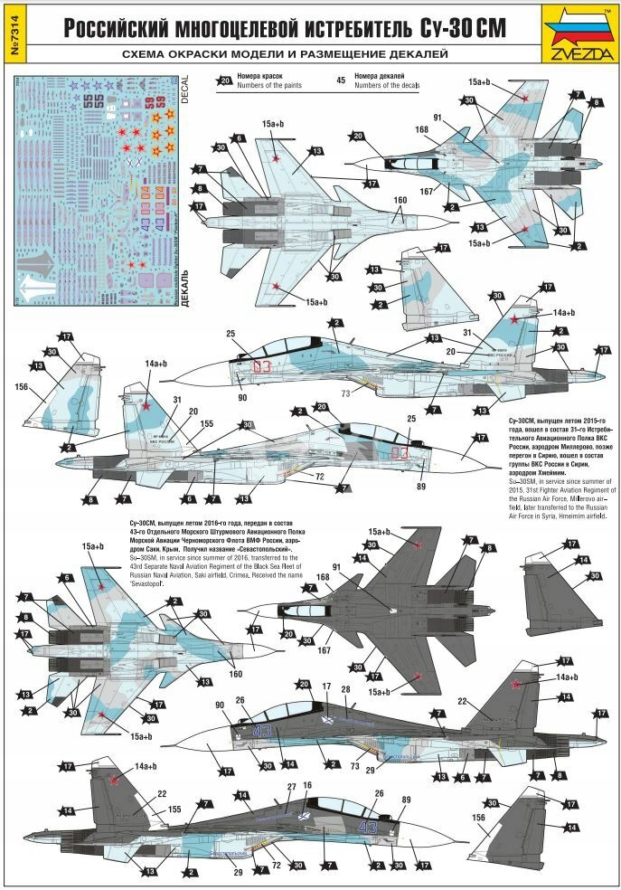 Су-30СМ Фланкер C Zvezda 7314 масштаб 1/72