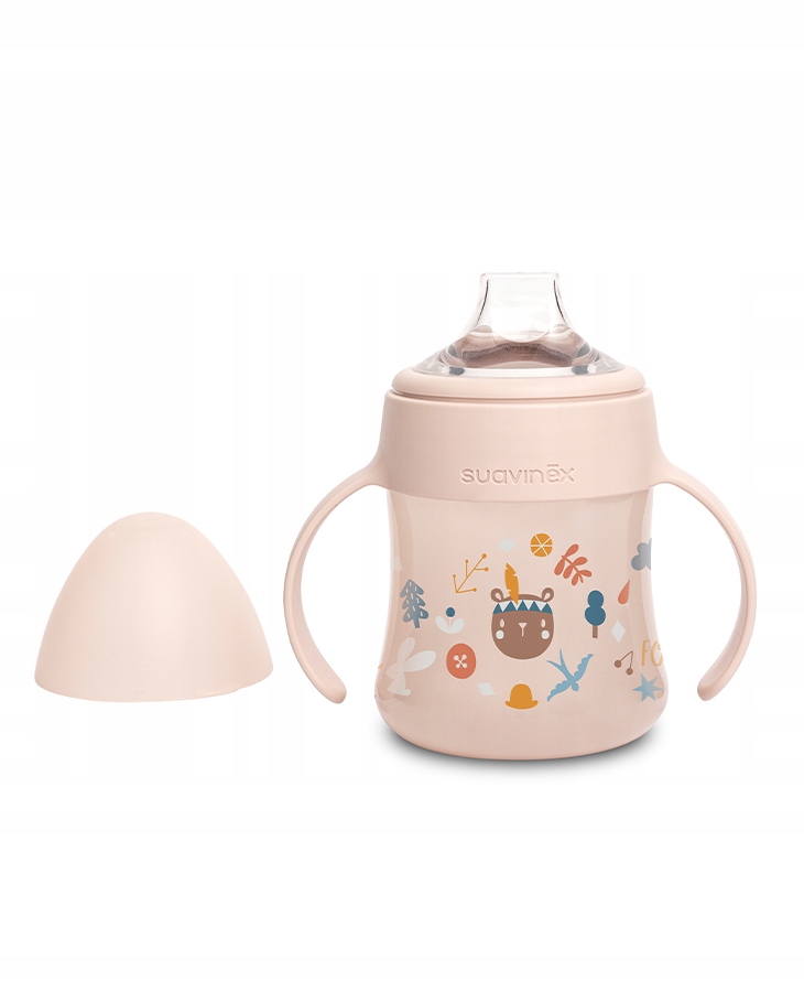 Перша чашка має ергономічну форму, має силікон , гладкий і м’який носик, а також гвинтове кільце з ручками, яке підходить для будь-якої пляшки Suavinex (крім пляшок Zero) і захисну кришку. Ручки ідеально підходять для маленьких дитячих ручок.