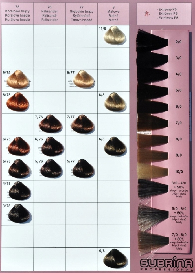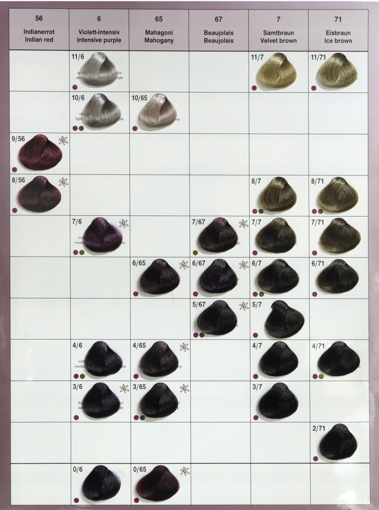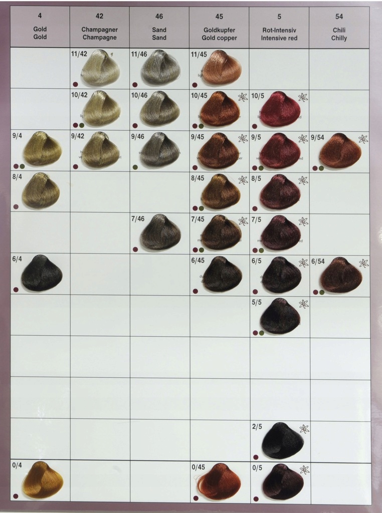 Відтінки, що містять пігмент P5 (підвищення інтенсивності кольору доступне у відтінках міді, червоного дерева, червоного та фіолетового, позначених зірочкою на картці кольорів)
