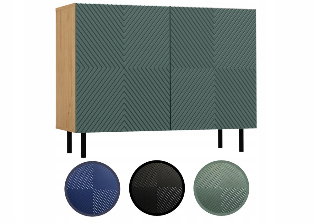 СУЧАСНА КОМОДА КАМА, КВАДРАТНА РЕБРИСТА, 2 ДВЕРІ, ДУБ АРТИЗАНСЬКИЙ/ЗЕЛЕНИЙ
