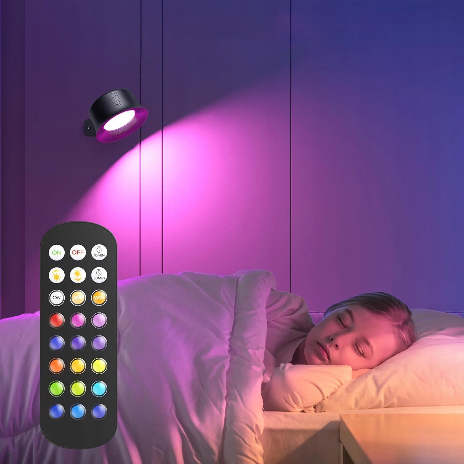 - 💡 Ви можете регулювати 18 кольорів, яскравість світла за допомогою пульта дистанційного керування та встановити автоматичне вимикання через 10/300 хвилин. Завдяки функції пам’яті нещодавно використовувані налаштування будуть збережені для полегшення використання їх наступного разу.