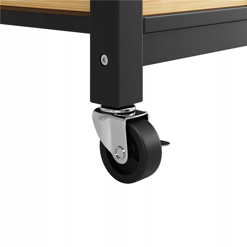 Розміри виробу: довжина кухонного острова 120 см, ширина 45 см, висота 90 см. Цей кухонний візок має складні бортики, які можна розкласти і використовувати як обідній стіл. Загальна довжина сторінок у розкладеному вигляді 73 см.