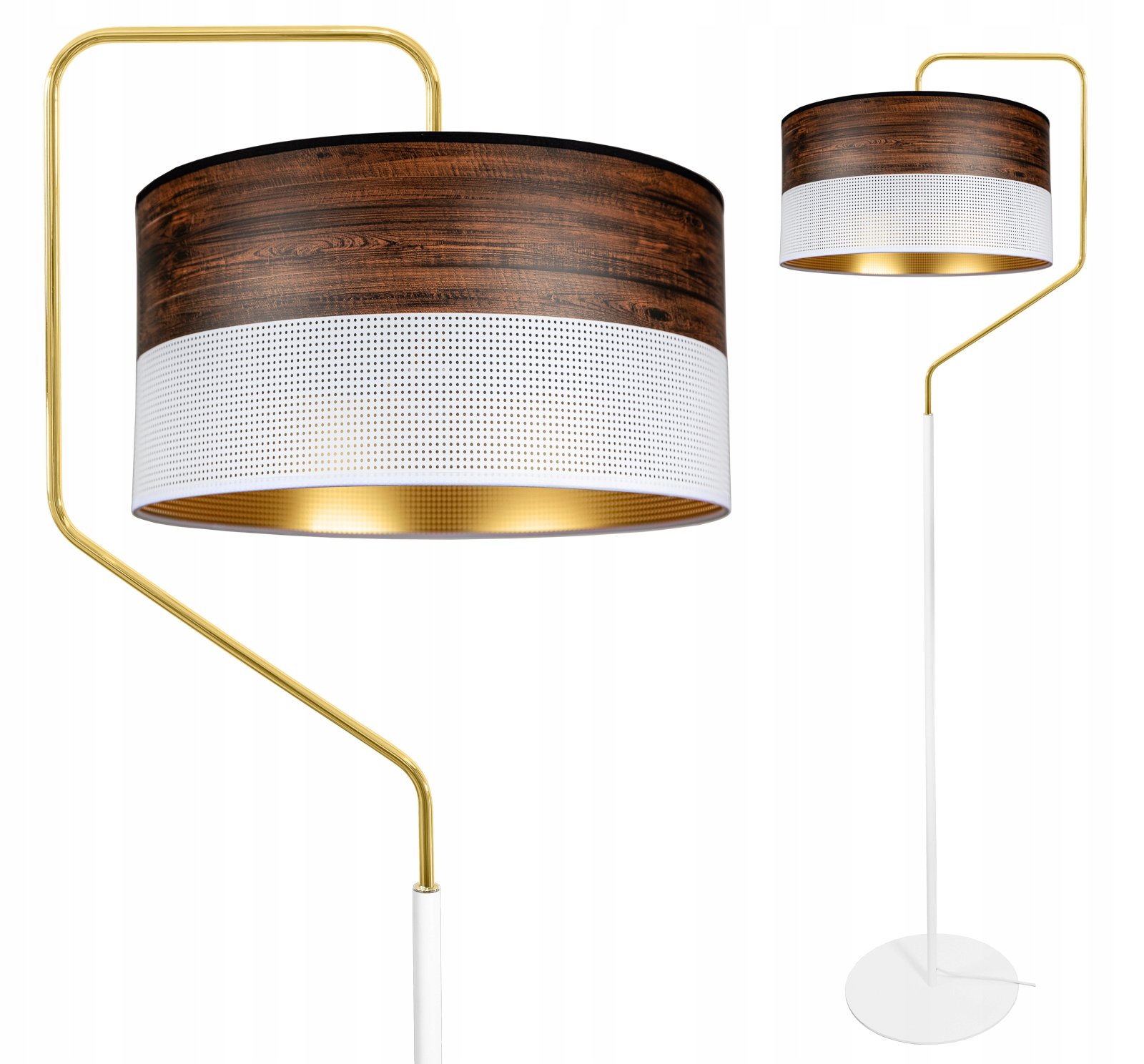 Сучасна лампа для підлоги - в білому з світильником у модному сучасному поєднанні білого, золота та дерев’яного мотива. Дизайнерський стиль ідеально відповідатиме вашому інтер'єру. - це доповнення до стельових світильників.