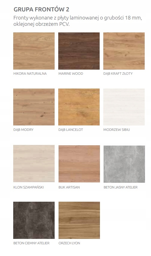 - Нижні шафи мають білий передній плінтус з ламінованої дошки. Плінтус адаптований до ширини кожної шафи окремо - можна замовити плінтус довжиною 2 м іншого кольору з доступної колірної гами