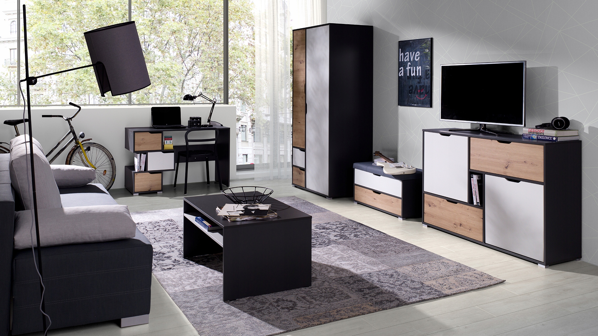 КОРПУС: ГРАФІТОВИЙ, ПЕРЕДНЯ ЧАС: МАТОВИЙ БІЛИЙ + ДУБ ARTISAN, СИДІННЯ: AVELLINO 101