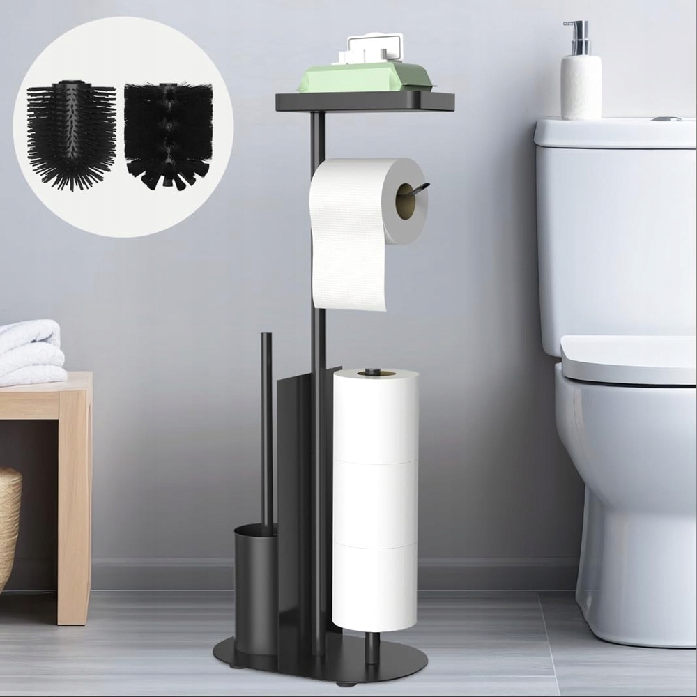 ✅Завдяки дизайну 4-в-1 він поєднує в собі верхню полицю для зберігання, тримач для туалетного паперу, туалетну щітку та запасний тримач для туалетного паперу.