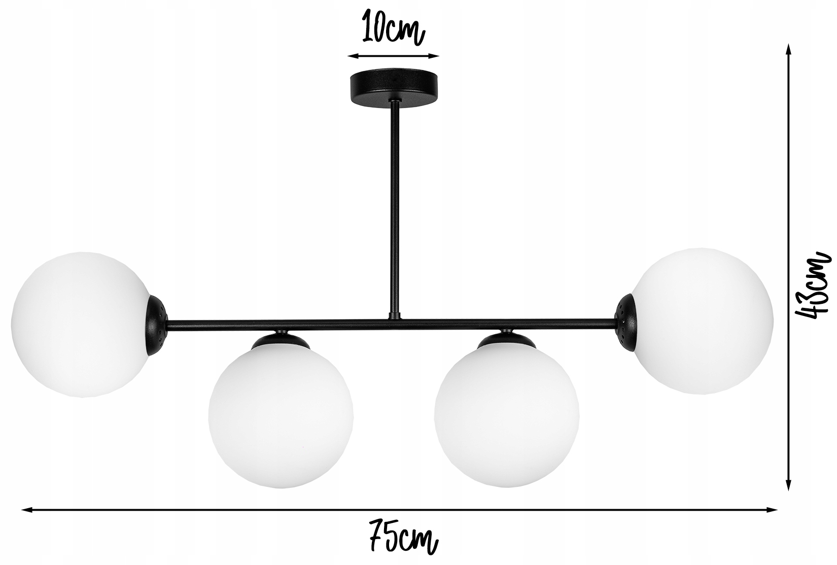 - Розміри лампи: Максимальна висота 43 см, довжина 75см, обшивка стелі 10см