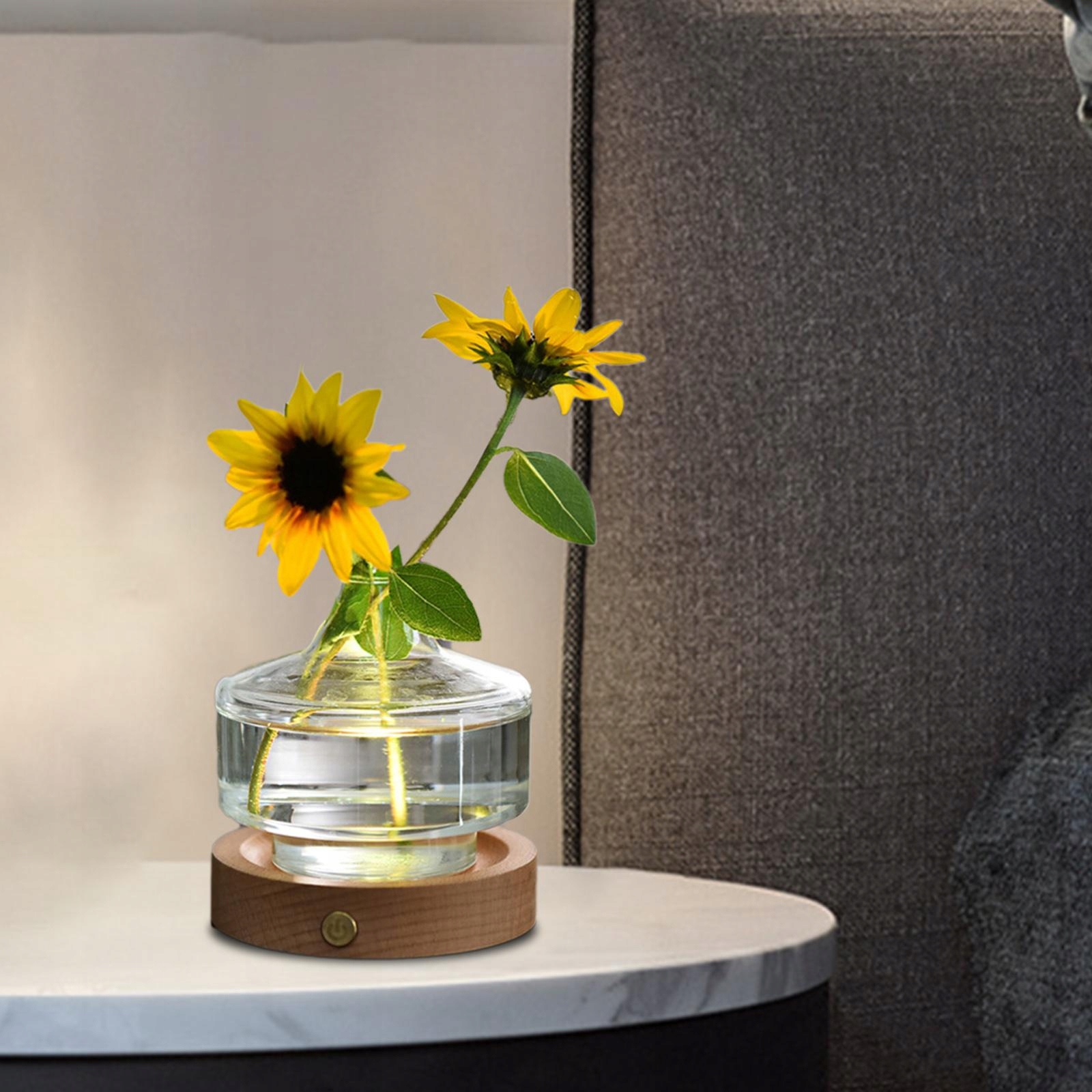 Сучасна ваза для квітів, креативна дерев'яна основа з нічником, декоративне скло