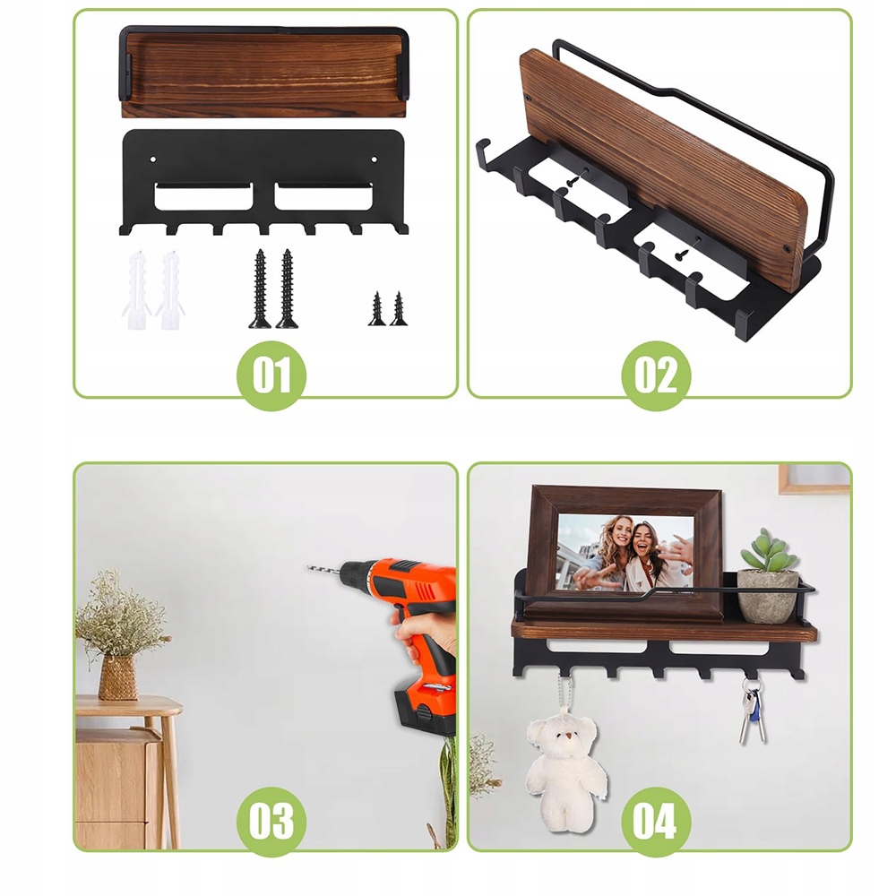 🌆-Набір включає сім гачків для підвішування парасольок, ключів, повідків для собак та інших дрібних предметів. Він також має верхню полицю для зберігання інших речей.