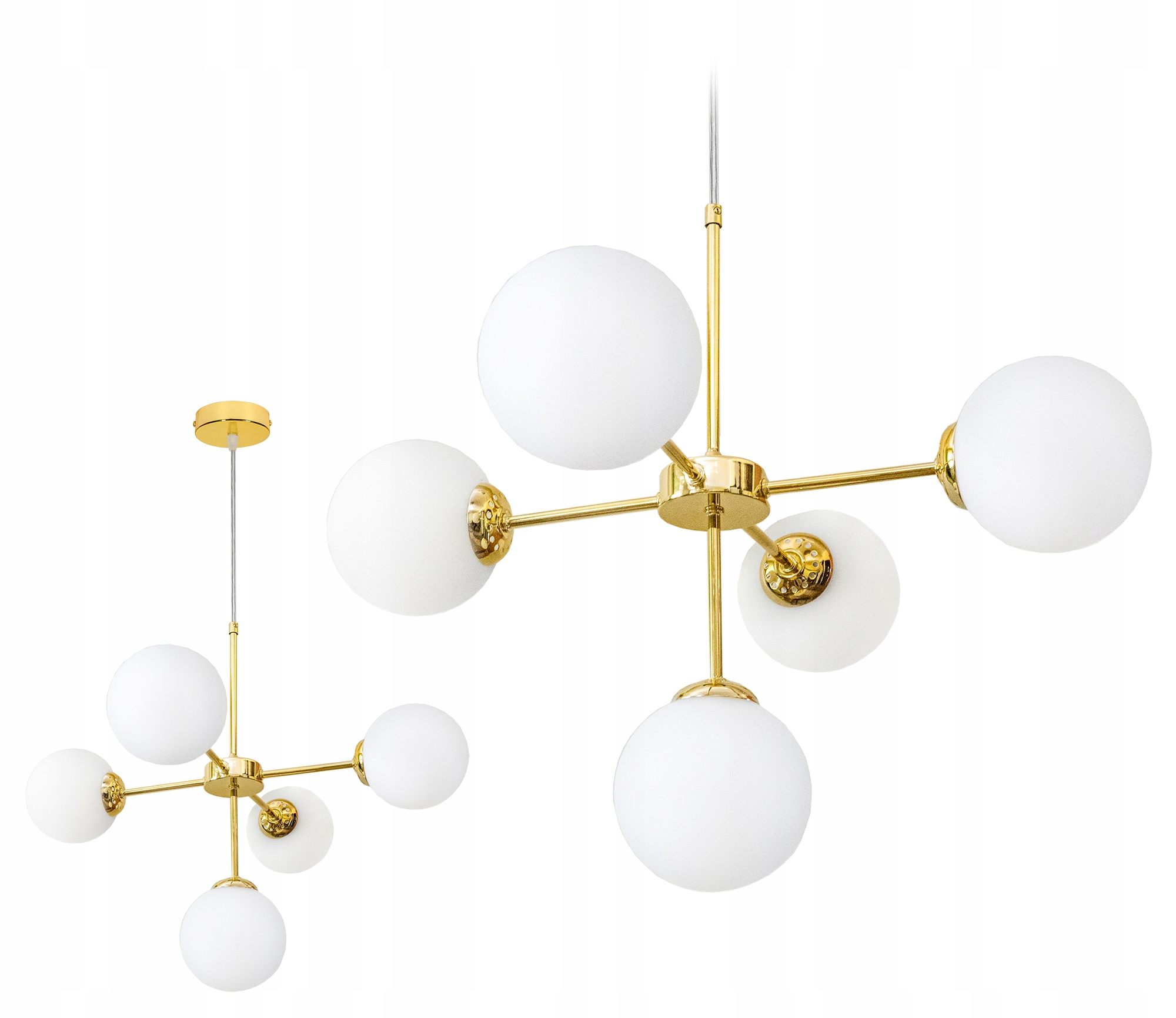 Сучасний стельовий світильник - золота люстра з білими плафонами. Дизайнерський стиль, який ідеально впишеться у ваш інтер'єр.