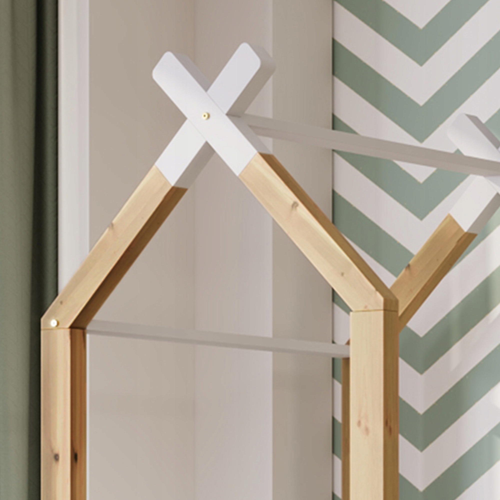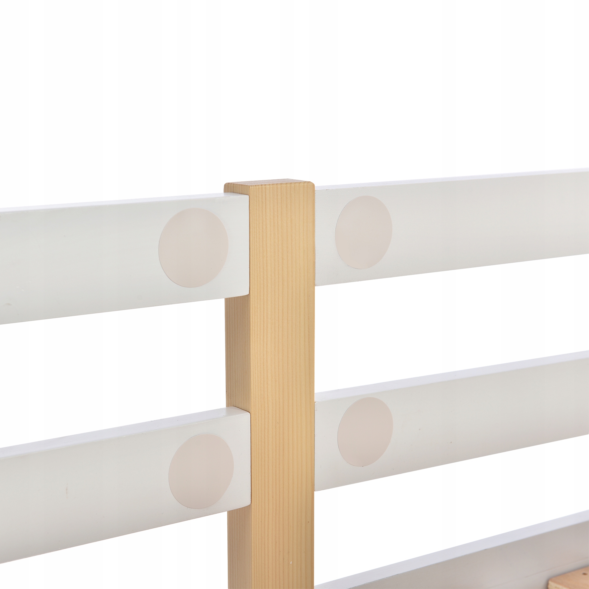 Стильний і простий дизайн: поєднання деревини та білого кольору створює делікатний вигляд із сучасним відтінком. Класичний колір і простий дизайн ідеально поєднуються з оточенням і підкреслюють декор вашого дому. Це гарне ліжко дуже сподобається дітям.