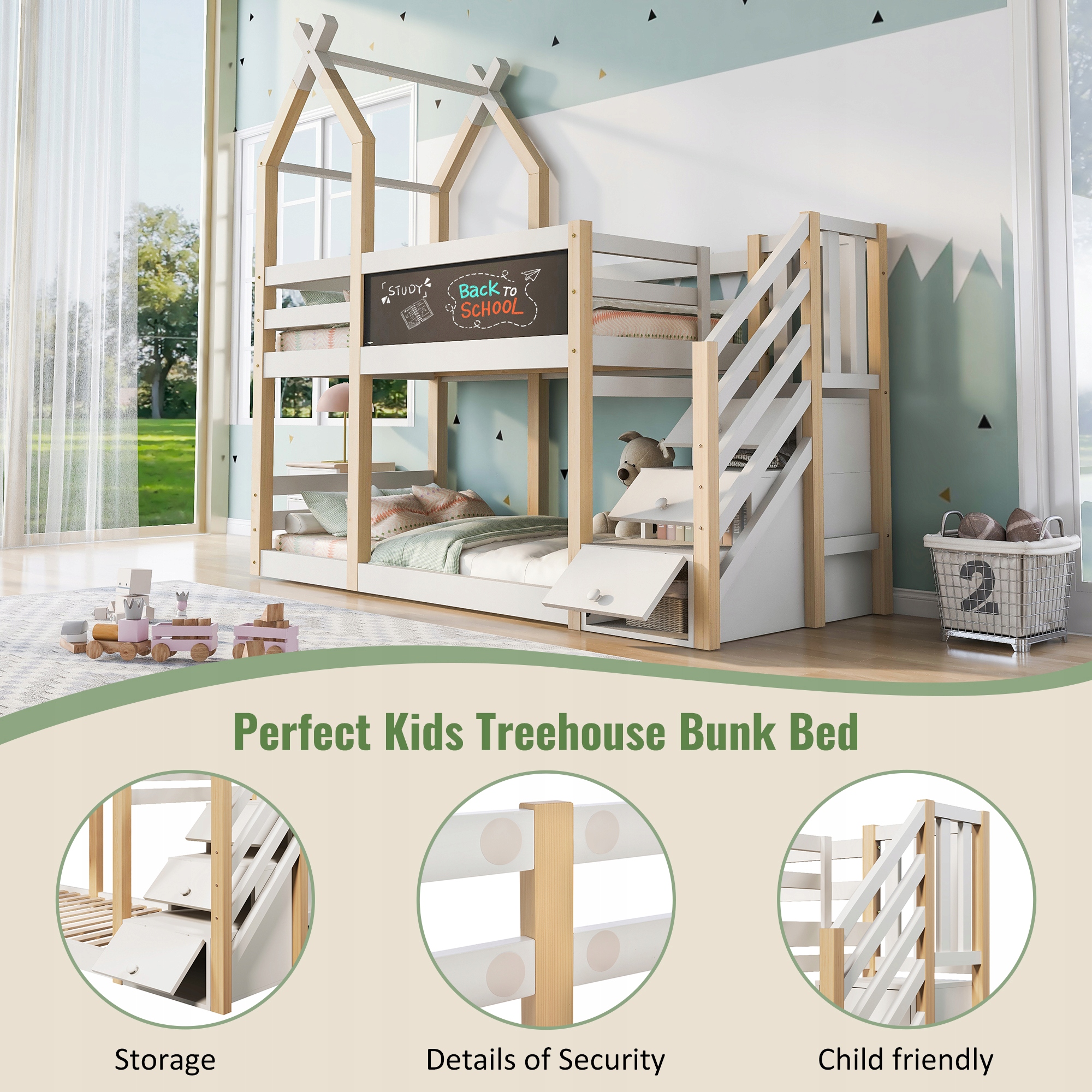 Ідеально підходить для сім’ї з двома дітьми: наше популярне середнє спальне ліжко в будиночку на дереві було покращено завдяки додаванню нижнього ліжка, яке зберігається під основним дахом будиночка на дереві.