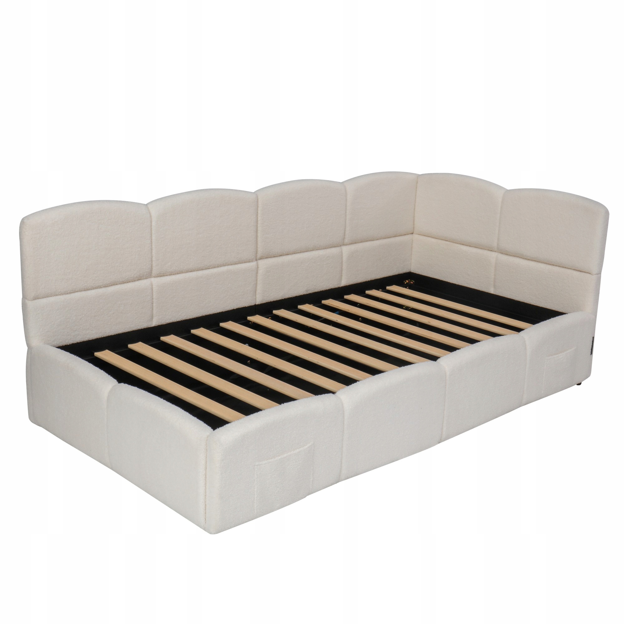 Ліжко з м'якою оббивкою, дитяче ліжко, односпальне ліжко, ліжко з ящиком, диван-ліжко 90х200 см, з каркасом, USB-зарядка, сумка для зберігання, молодіжне ліжко та ліжко для дорослих, оксамит, беж (без матраца)