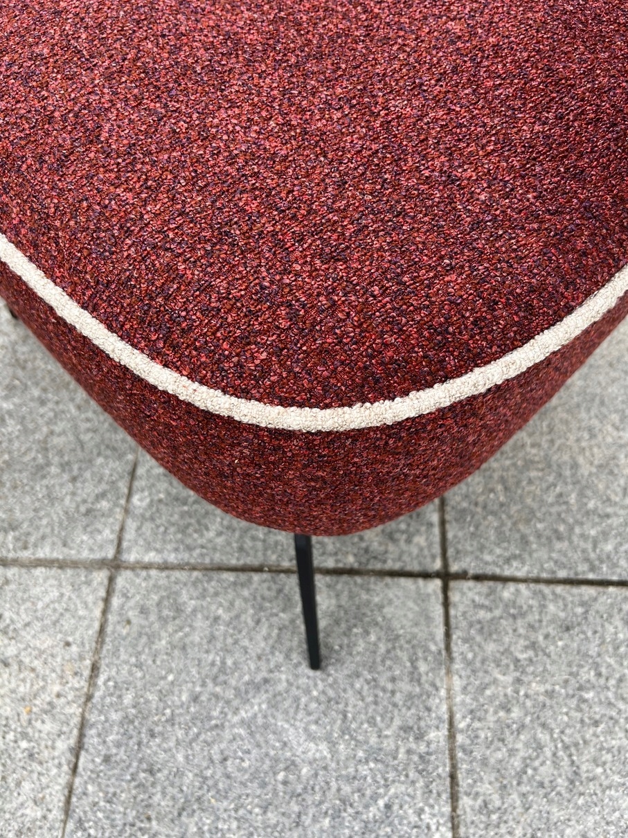 Крісло може бути покрите будь -яким вибраним матеріалом. Матеріальні шаблони надсилаються в PDF на адресу електронної пошти, вказану замовником, або можна завантажити з стопи в самому дні нашого веб -сайту FAQ - матеріали та забарвлення деревини. Обрізка навколо сидіння та на задній частині стільця також може бути зроблена в будь -яких кольорах. Можна зробити підставку для набору.