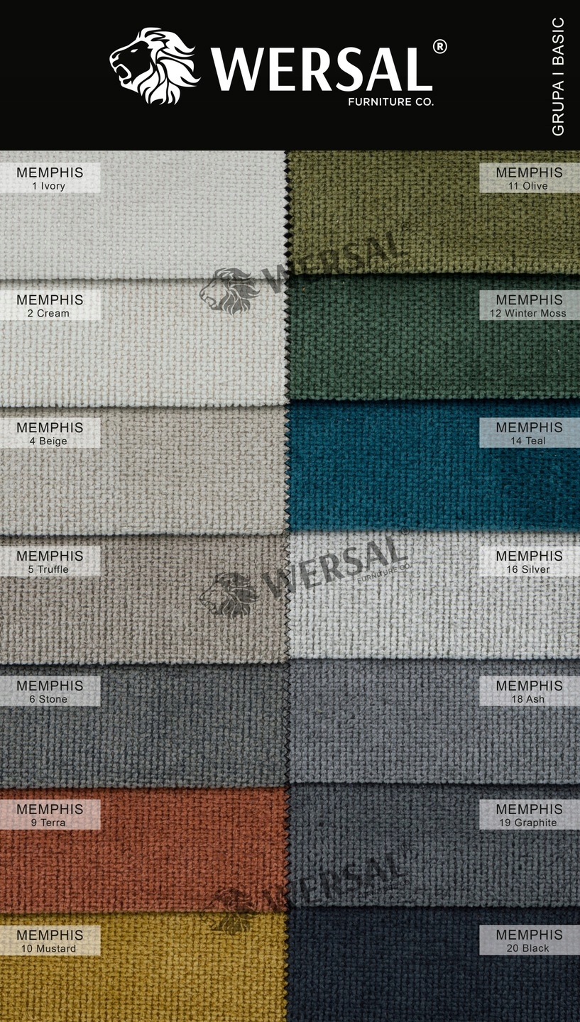 - це надзвичайно м'який, велюровий матеріал з матовою обробкою, який надає меблям елегантний і сучасний характер. Стійкий до стирання та простий у чистці, ідеально підходить для повсякденного використання, поєднуючи естетику з функціональністю.