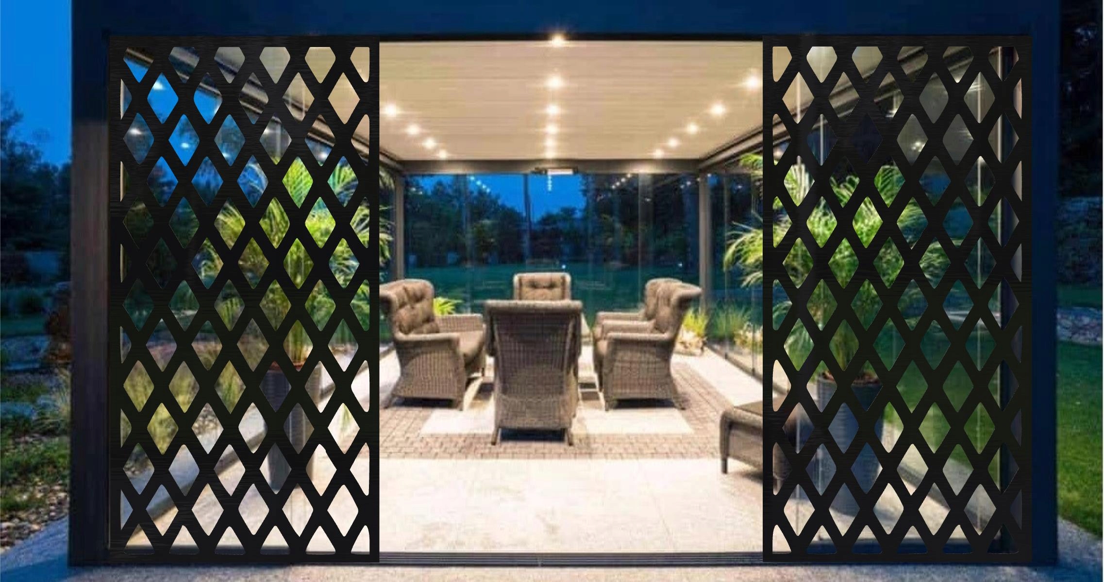 Панелі вирізаються за допомогою лазерної техніки, що дозволяє отримати надзвичайно рівні й дуже точні краї. Панелі легко монтуються і можуть використовуватися в якості прольоту огорожі, хвіртки, воріт, балюстради, оздоблення стелі, внутрішнього оздоблення стін і елементів альтанок, садових дахів, пергол і конструкцій терас. У кожному елементі ми можемо вирізати готові отвори для заклепок або кріпильних кронштейнів відповідно до потреб замовника.