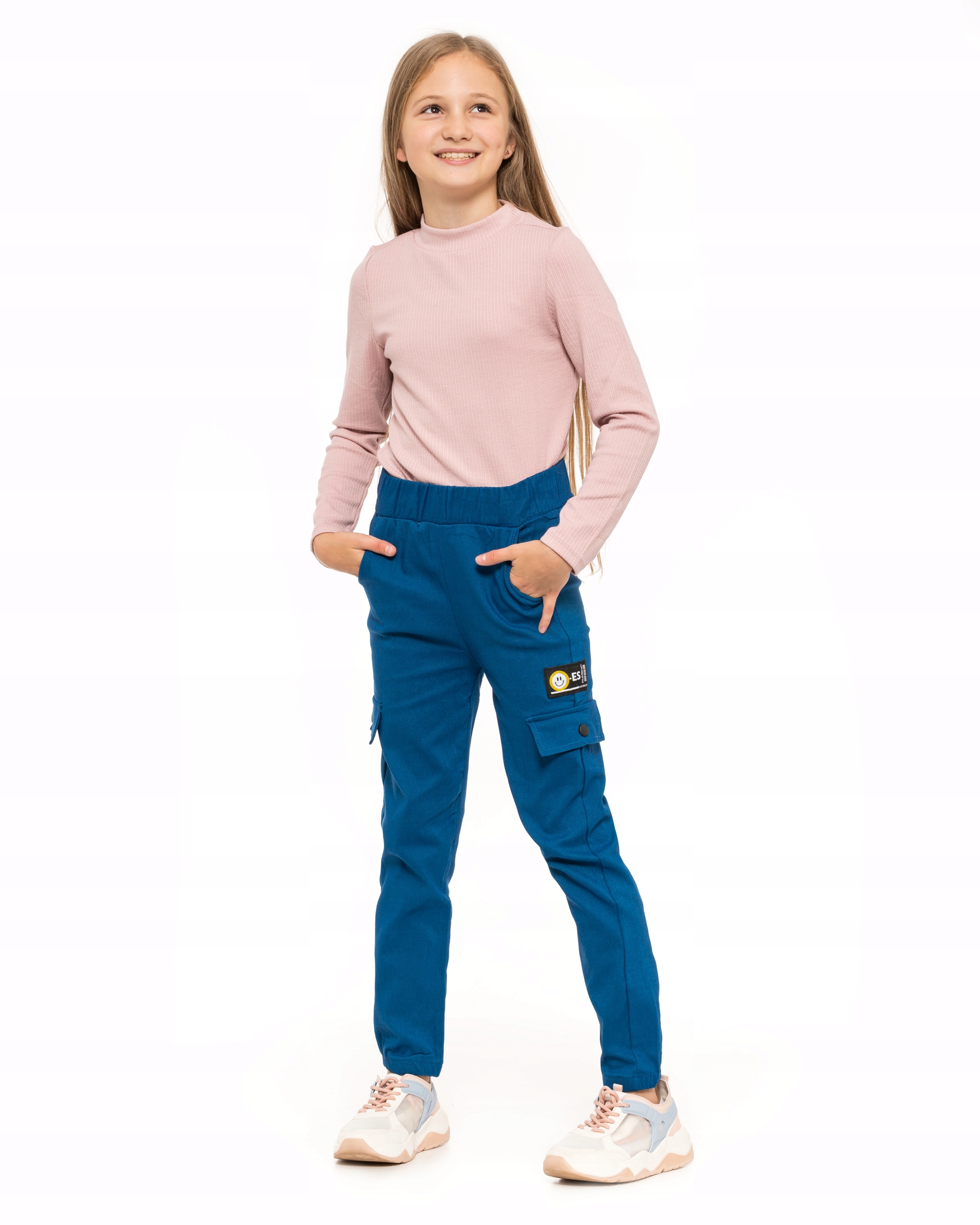 Наш товар доступний у розмірах - 130/140 см, 140/146 см, 146 /152 см, 152/158 смі в чотирьох модних кольорах - чорний, зелений, синій і рожевий. Штани мають чотири кишені спереду та написи на штанинах.Нижки оброблені манжетом, а завдяки еластичному поясу штани не сповзаютьі ідеально сидять по фігурі.