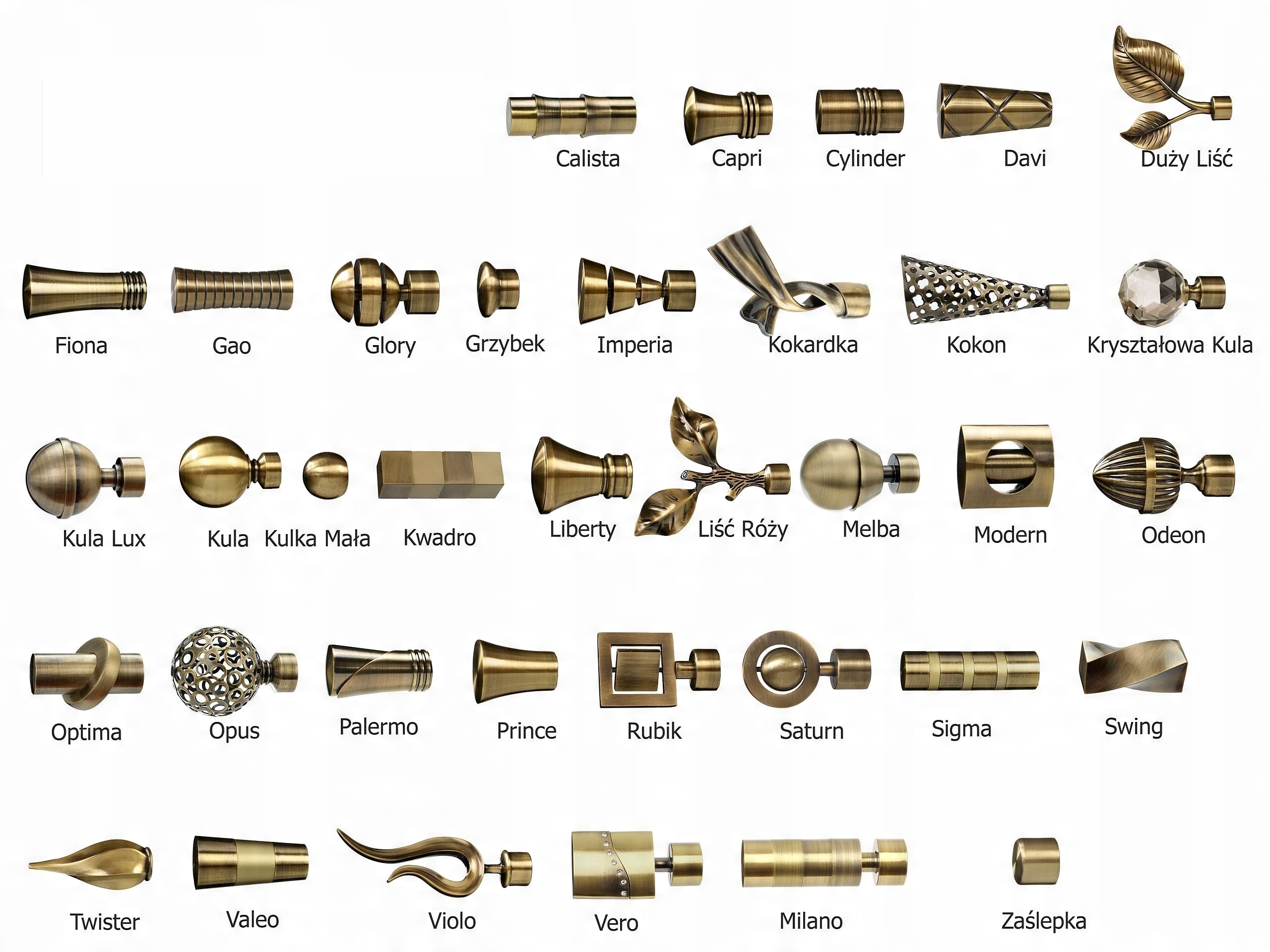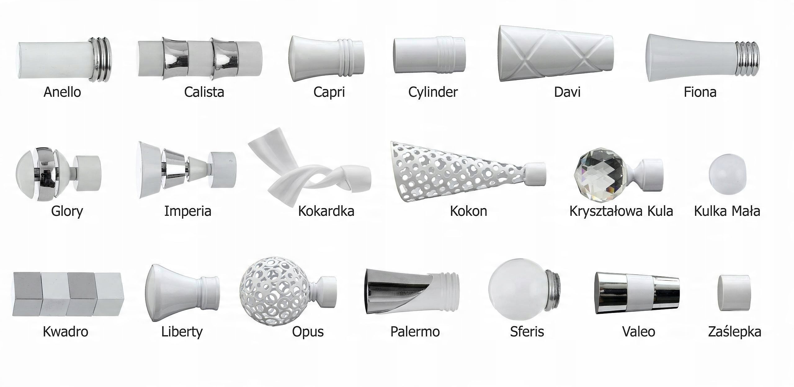 Нижче наведено кольори карнизів і моделей насадок на вибір