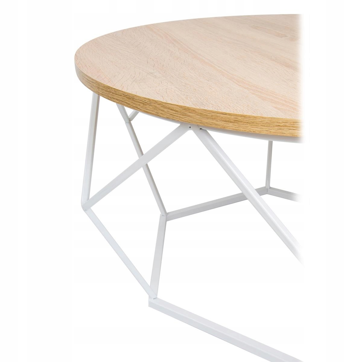 Конструкція з білим лаком, стільниця з МДФ плити світлого дуба, висота 40 см, діаметр 70 см