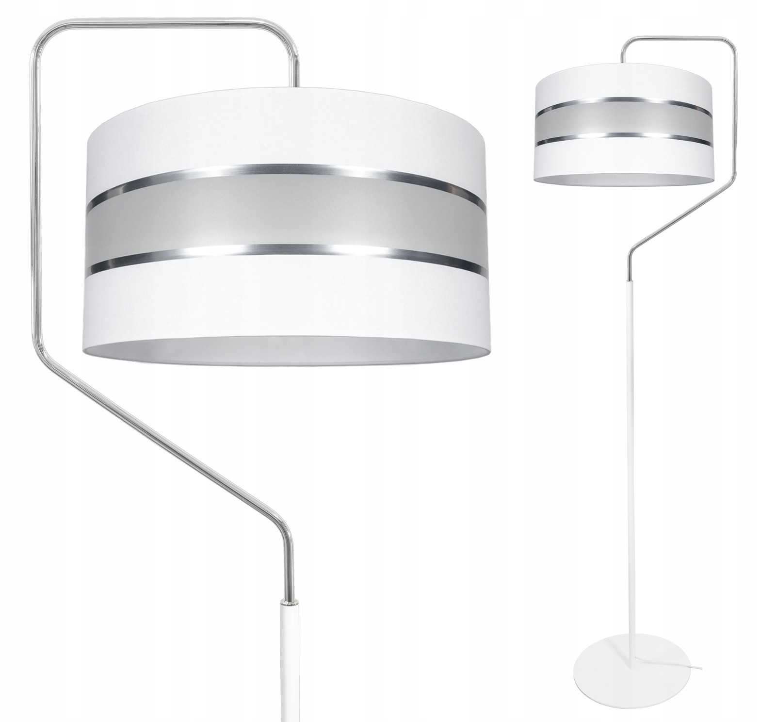 Торшер модерн - білий з додаванням хрому і білий абажур з хромом. Дизайнерський стиль чудово впишеться у ваш інтер'єр. Він доповнює стельові світильники.