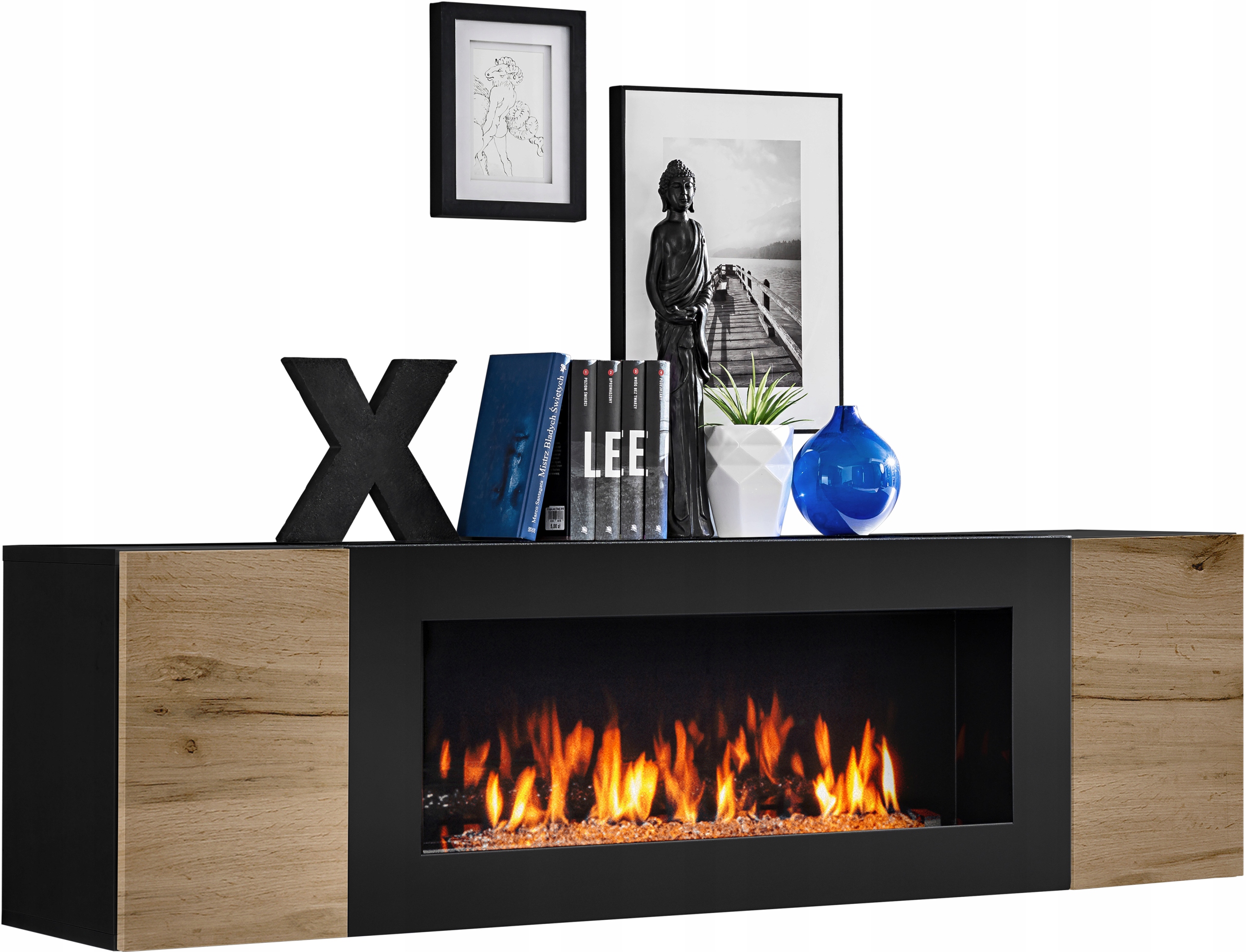 - FIREPLACE ШАФА: бічні шафи біля біокаміна з дверцятами, що відкриваються - всередині відділення для речей, шафа з біокаміном