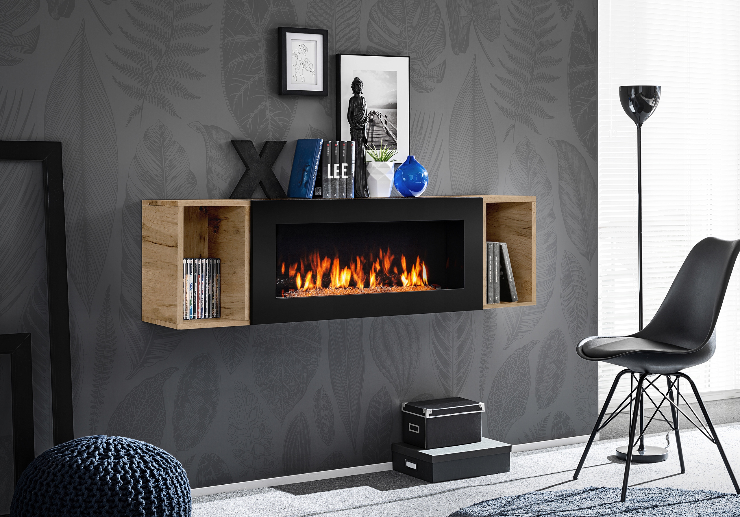 Вогонь, який видно на фото, справжній і створений з використанням екологічного та безпечного біопалива, яке не утворює сажі, золи та диму. В результаті горіння утворюється тільки водяна пара і невелика кількість вуглекислого газу, що запобігає забрудненню меблів і стін.