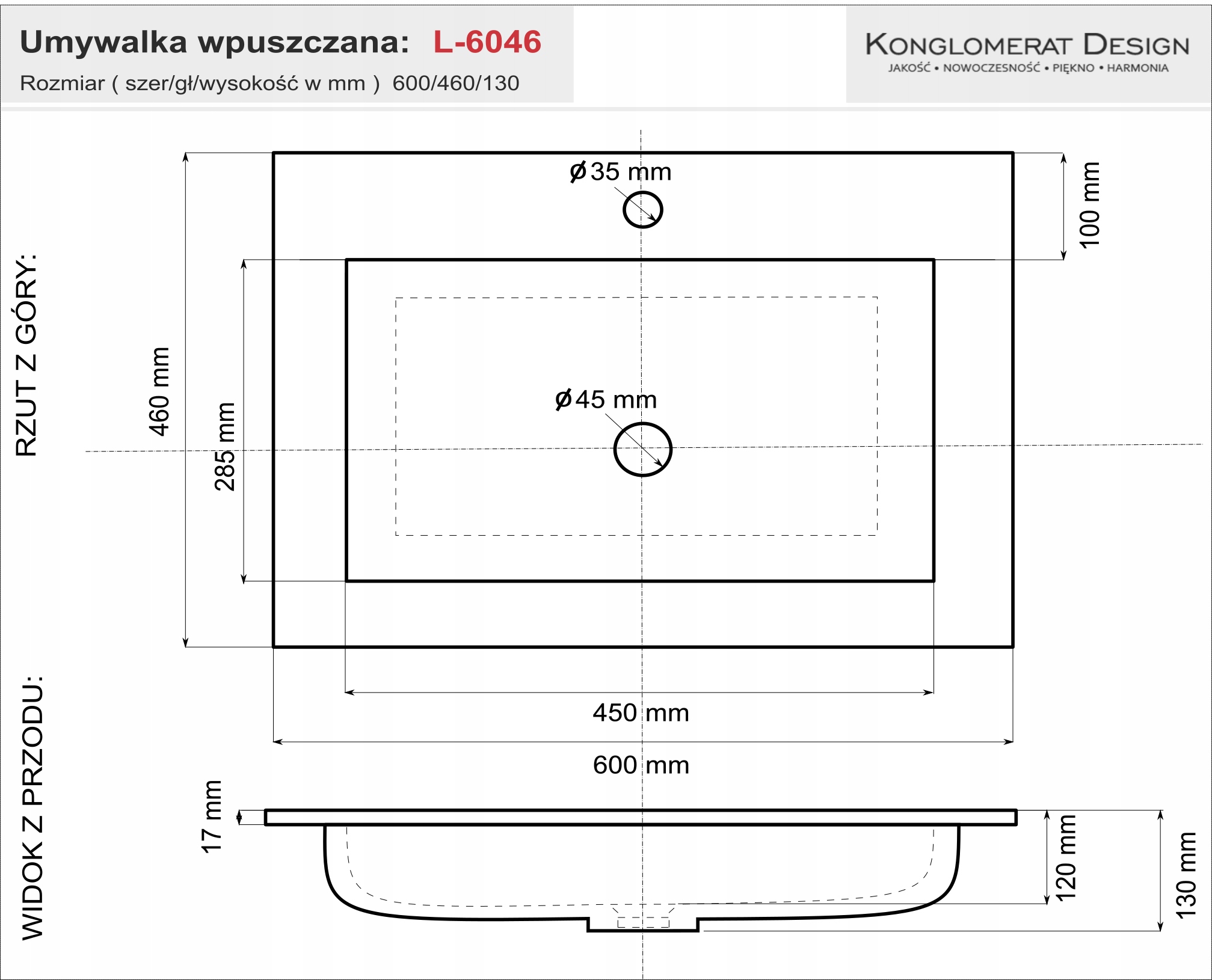 Для виробництва ексклюзивної лінії умивальників apm Product Konglomerat Design використовувалися найякісніші конгломерати та смоли. Ці умивальники дуже міцні та не дряпаються. стійкі, що робить їх ідеальними для щоденного використання. Умивальники призначені для установки на стільницю або тумбу в попередньо підготовлений отвір. Умивальник має глянсовий хромований перелив, розташований на задній стінці чаші. Діаметр отвору крана 3,5 см і сифон 4,5 см, стандартизований для 99% сифонів і кранів, доступних на польському ринку.