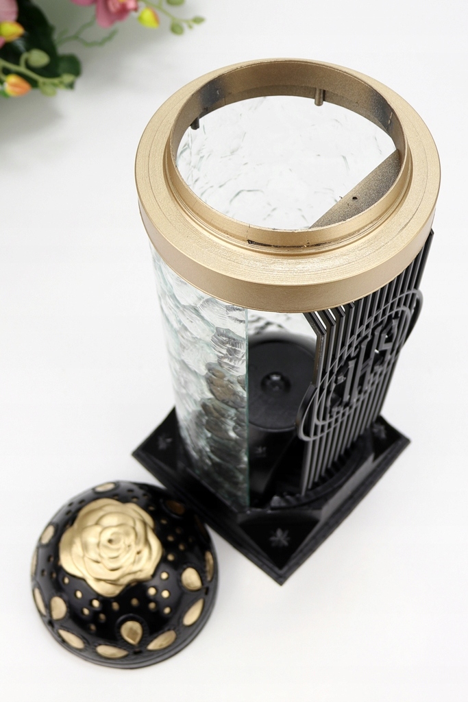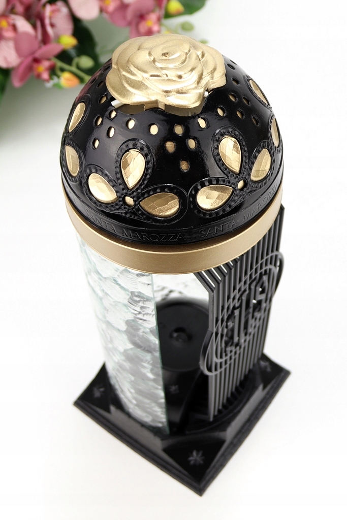 - дах має тиснені візерунки троянди та імітацію кристаліву золотистому атласному відтінку,