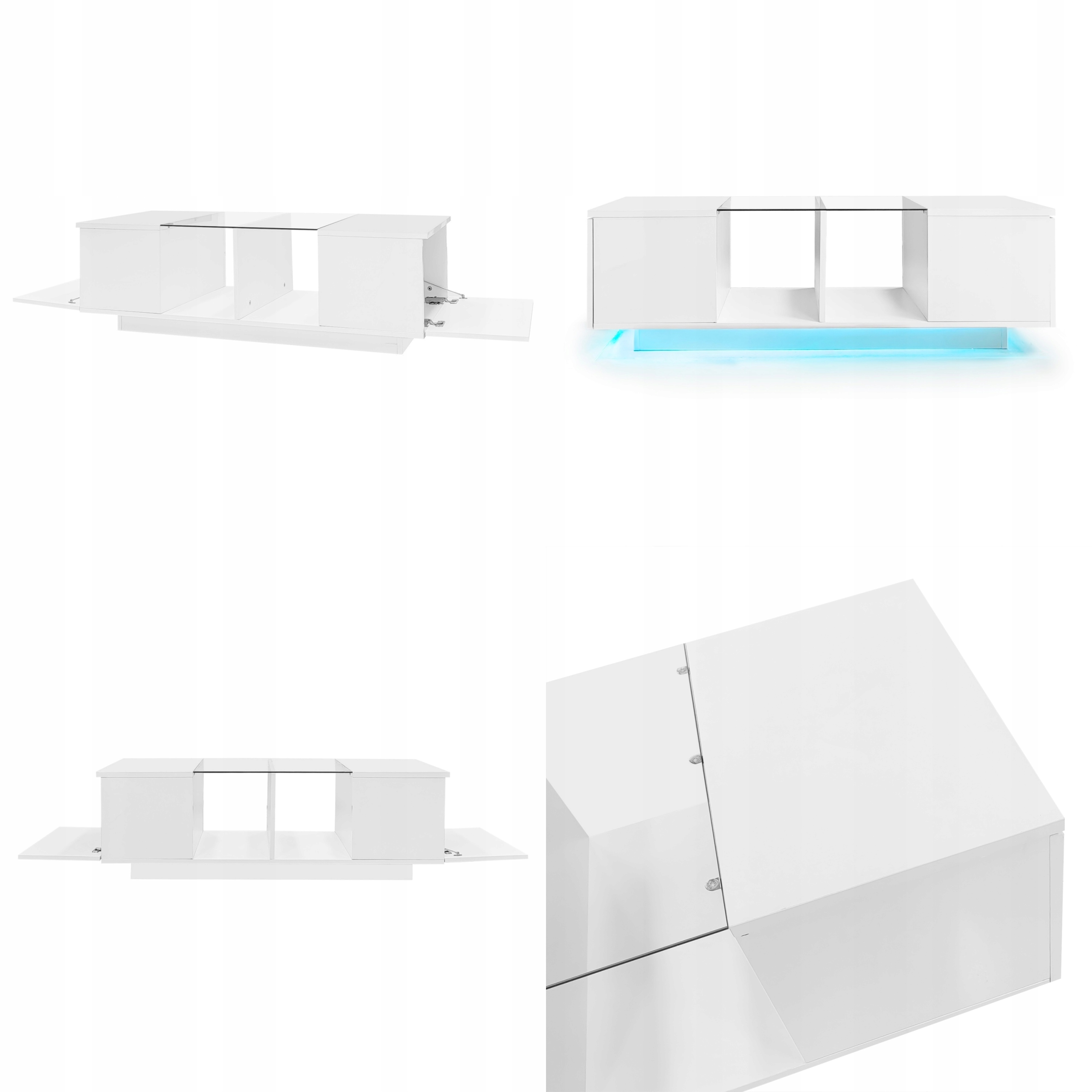 Сучасний білий журнальний столик зі світлодіодним підсвічуванням, глянцевий стіл, 120 x 50 x 38,5 см