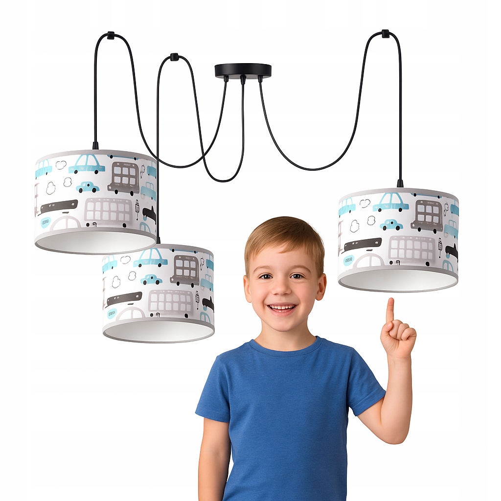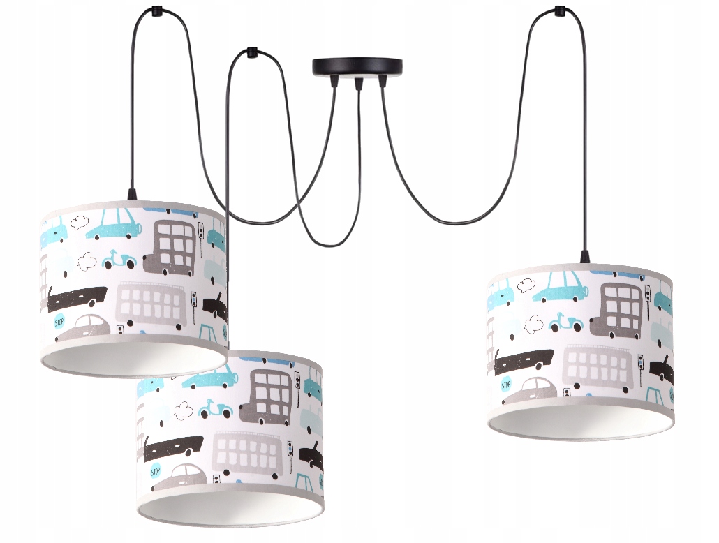 Сучасний підвісний світильник для кімнати хлопчика з малюнком блакитних машин - кожен абажур виготовлений з бавовняної тканини (не принт на ПВХ!) діаметром 20 см і висотою 15 см.