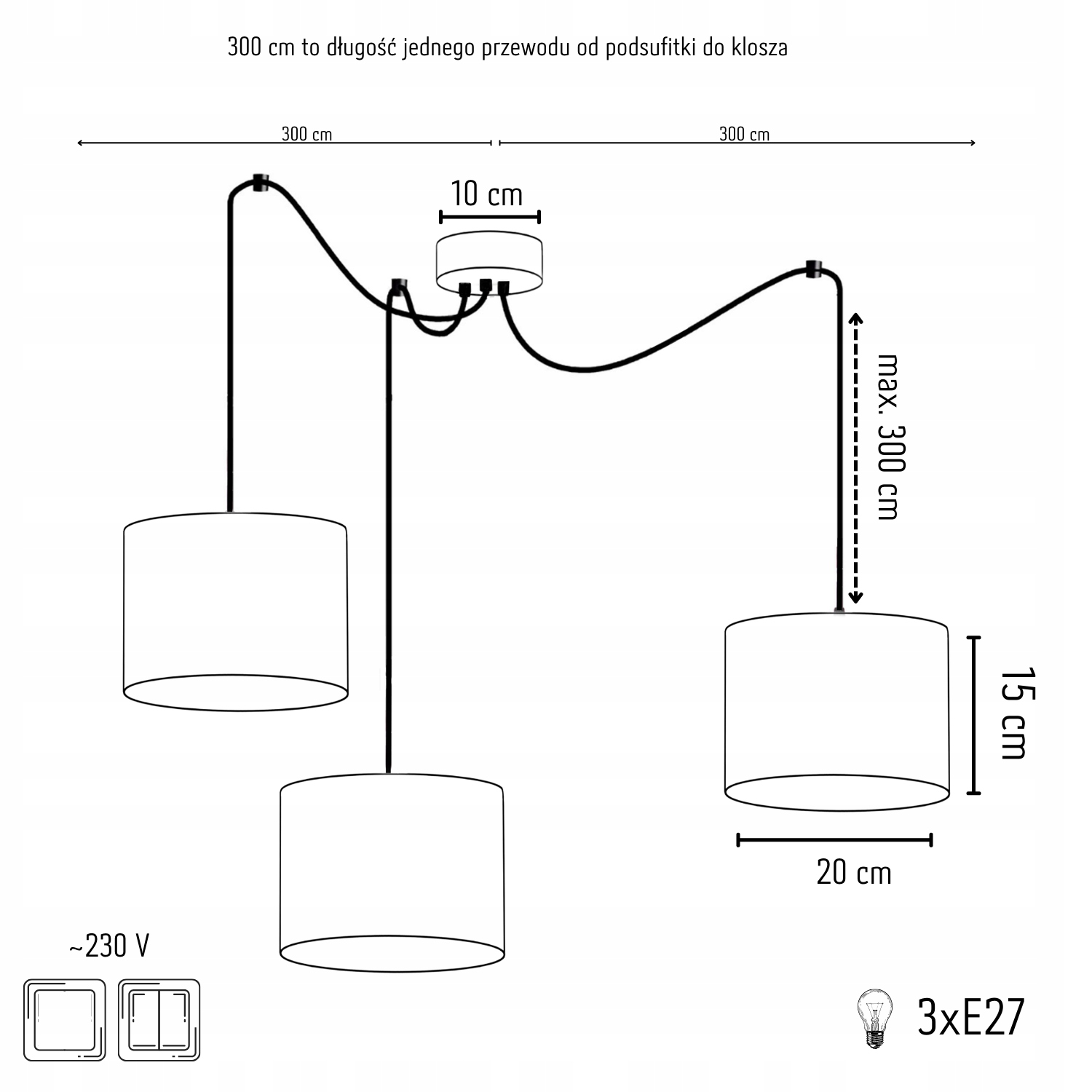 - Джерело світла: 3xE27 / максимальна потужність. 60W / нитка / декоративна / енергозберігаюча / в комплект не входить