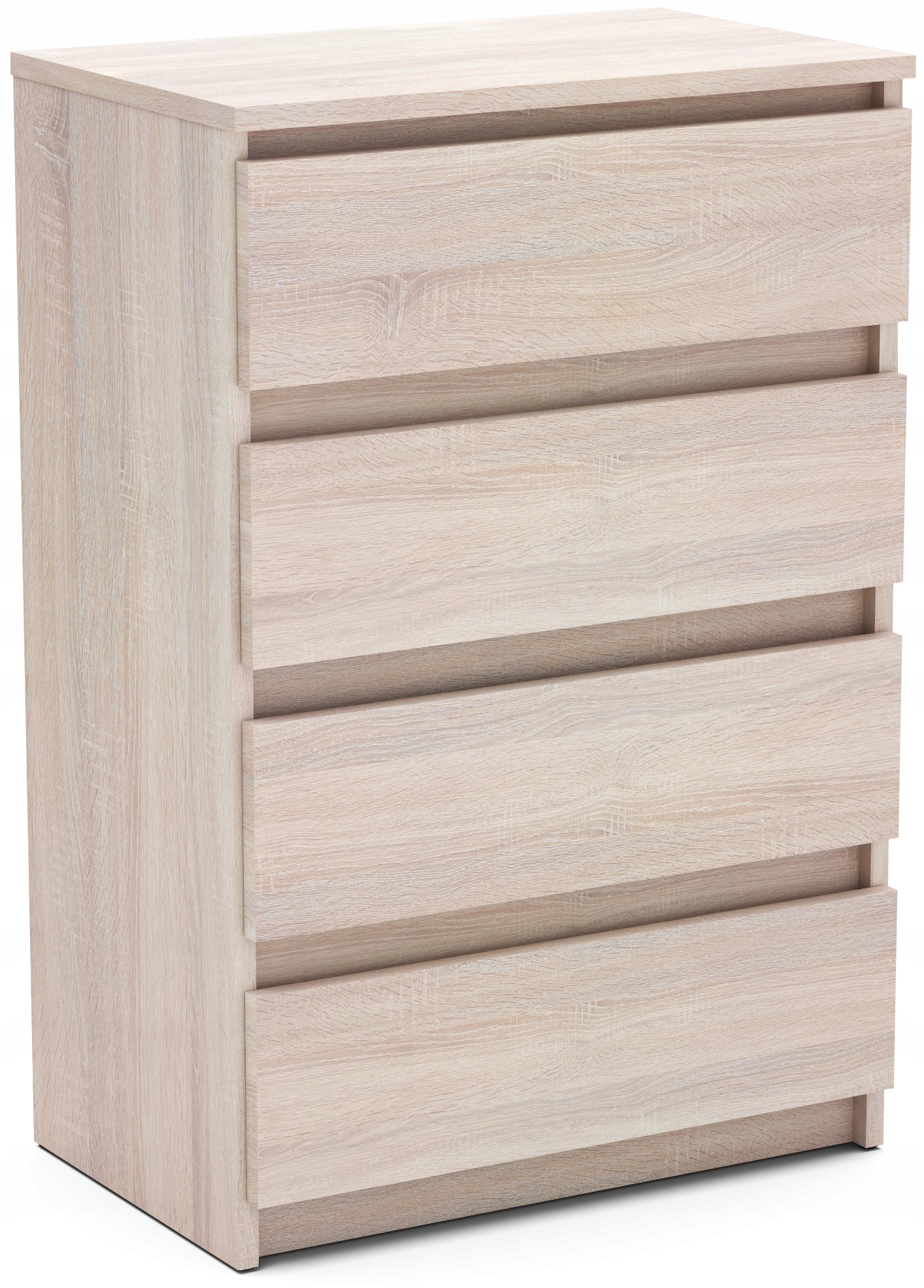 Комод складається з чотирьох ящиків, які забезпечують простір і зручне відкривання без ручок.