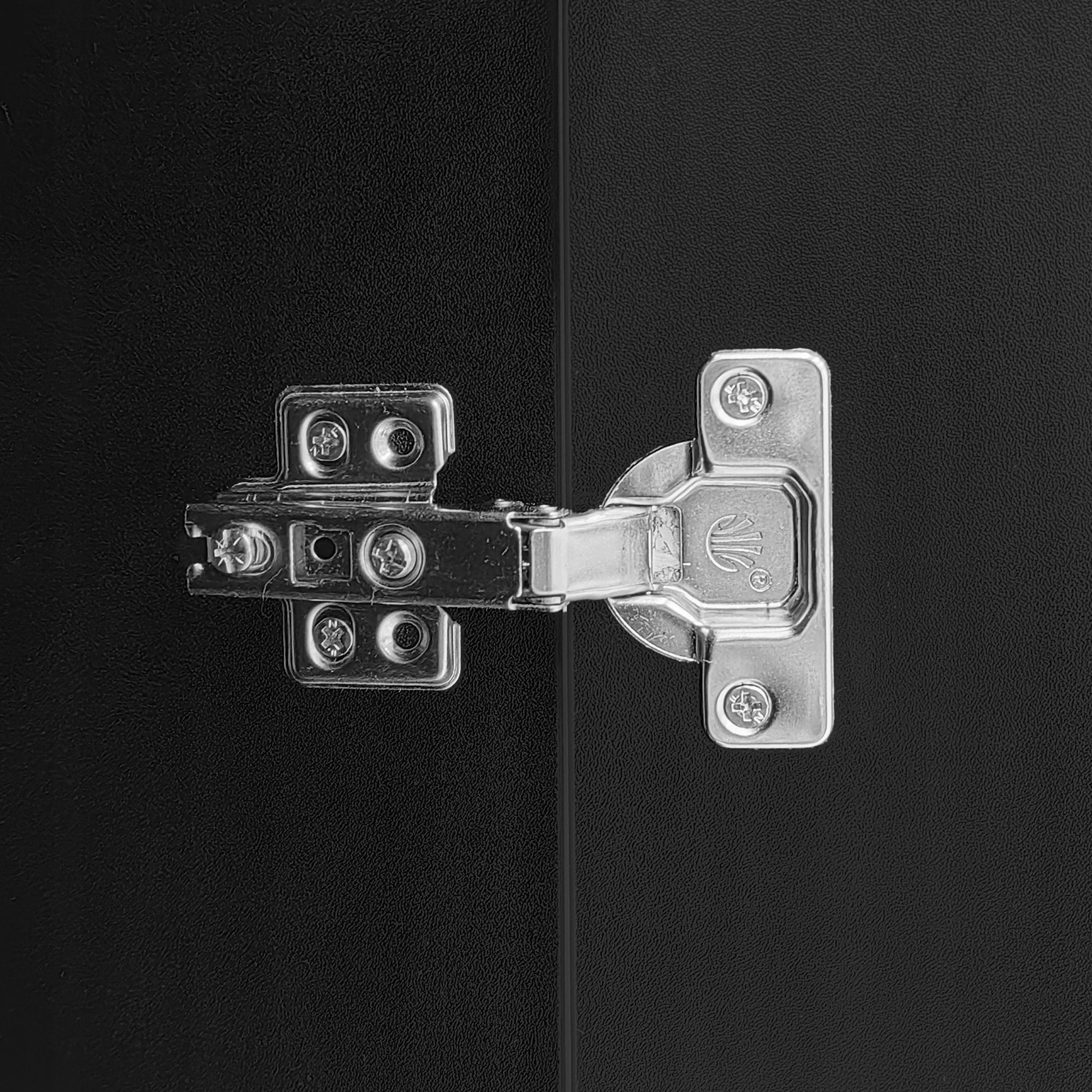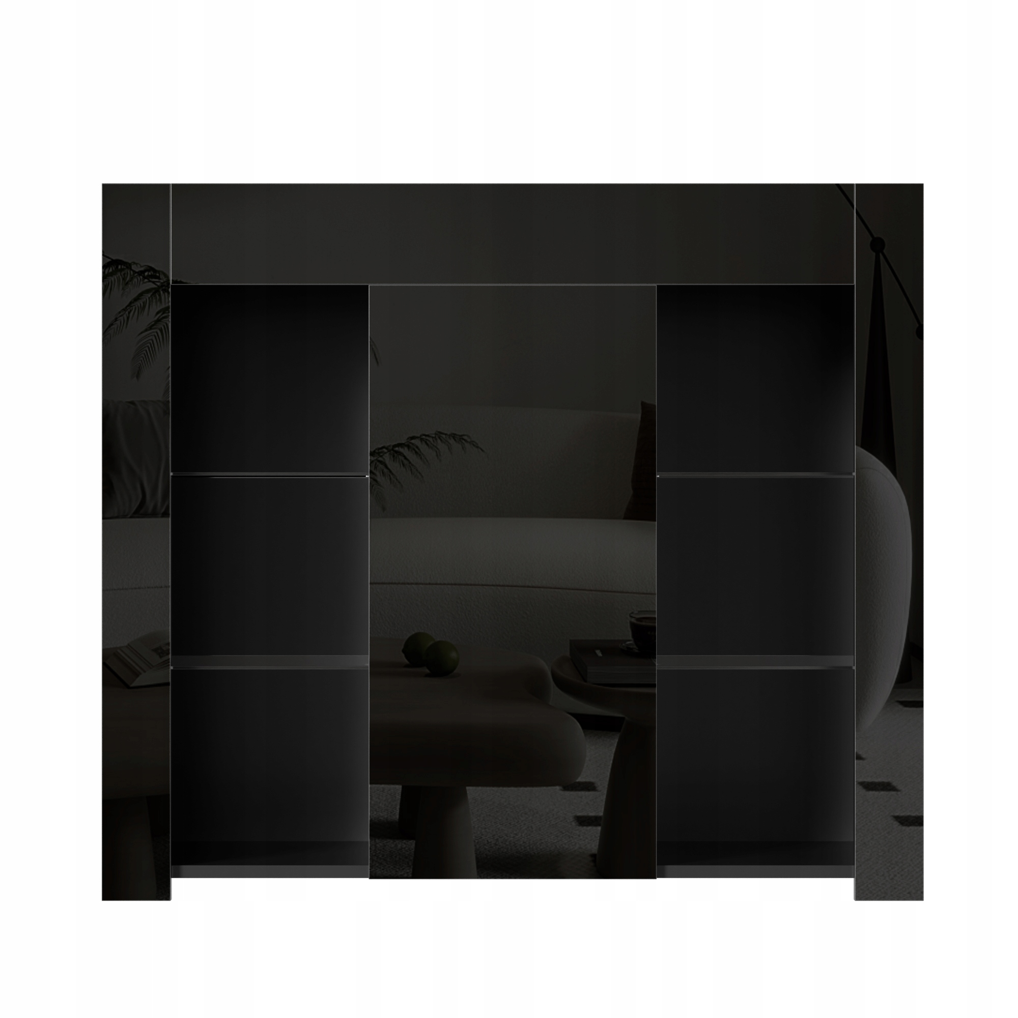 - Сучасний чорний буфет із глянсовою передньою та матовою поверхнею, що створює розкішний, гармонійний вигляд.