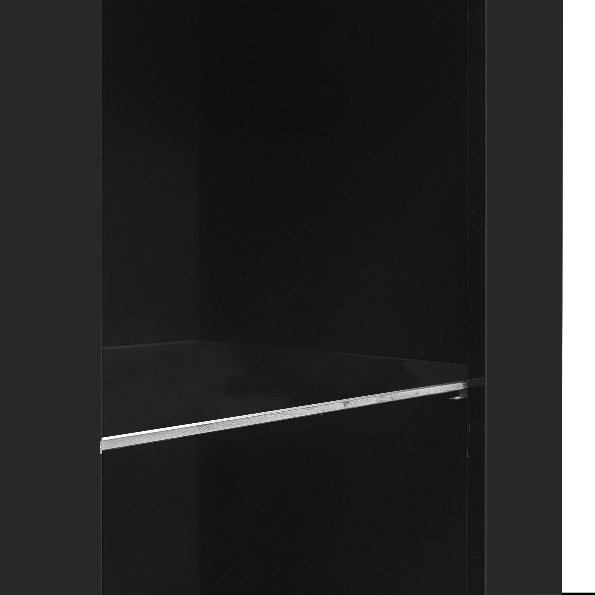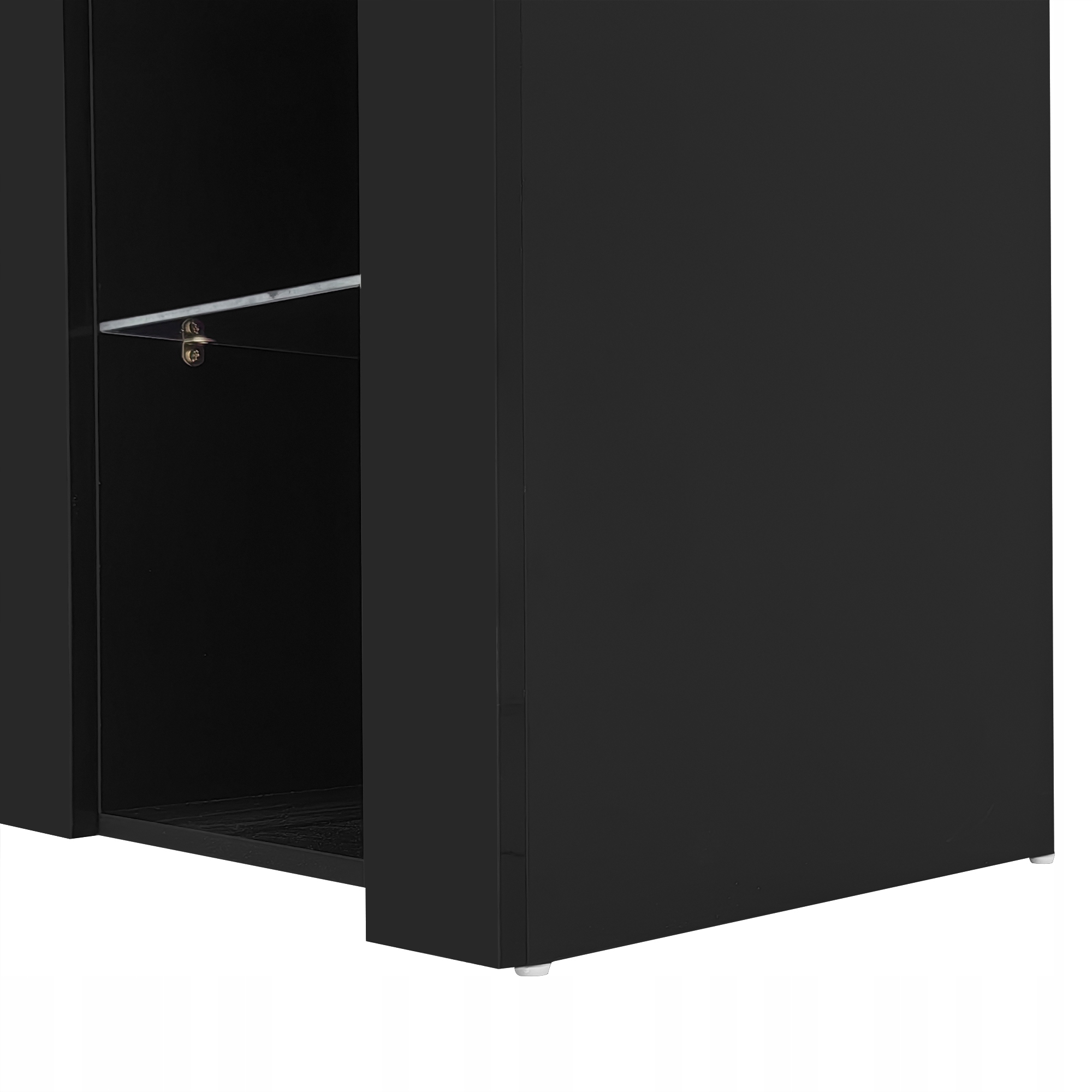Сучасний чорний буфет із глянсовою передньою частиною – Компактне, стильне рішення для зберігання зі скляними полицями та дверцятами шафи для вітальні, їдальні чи кухні – 95 x 35 x 83 см