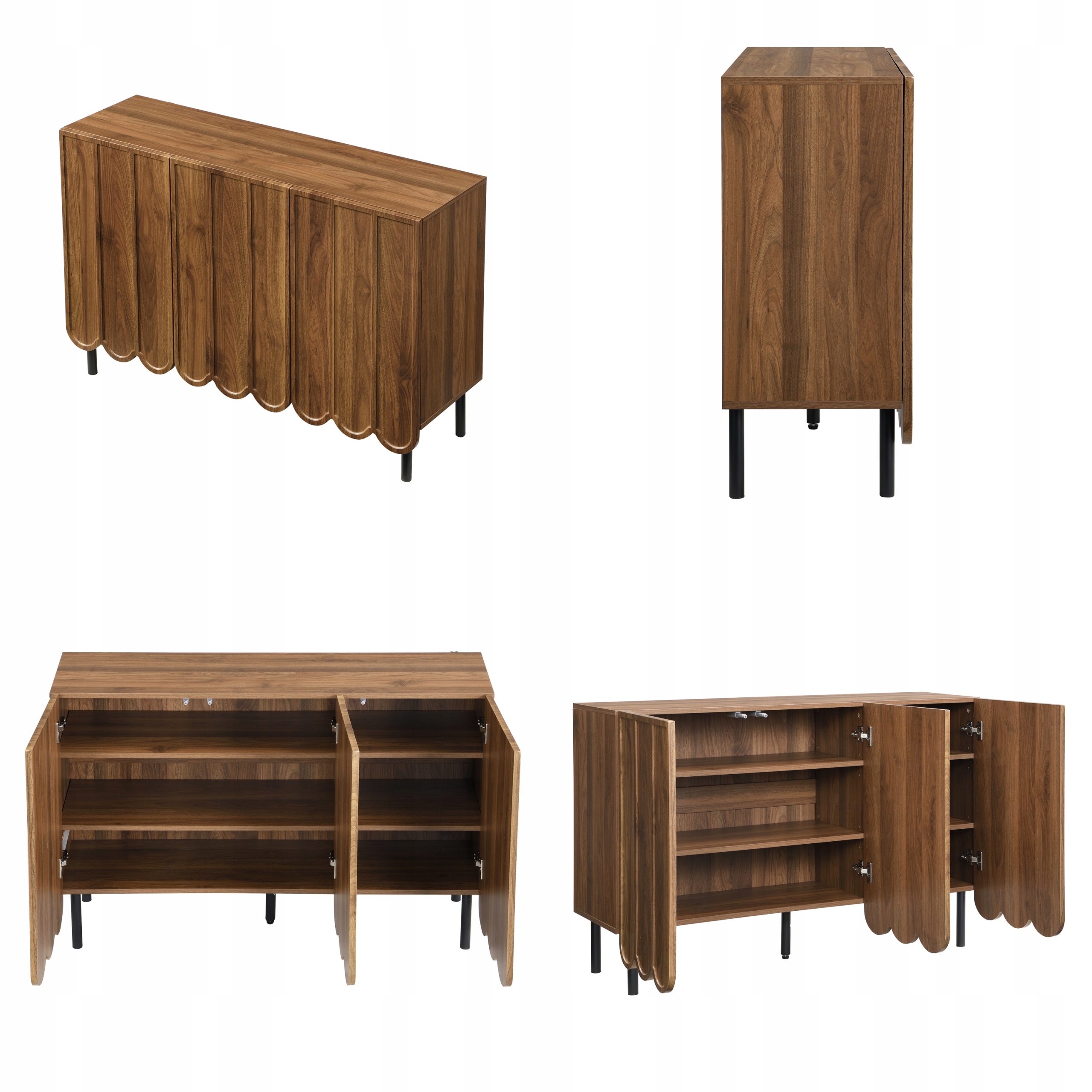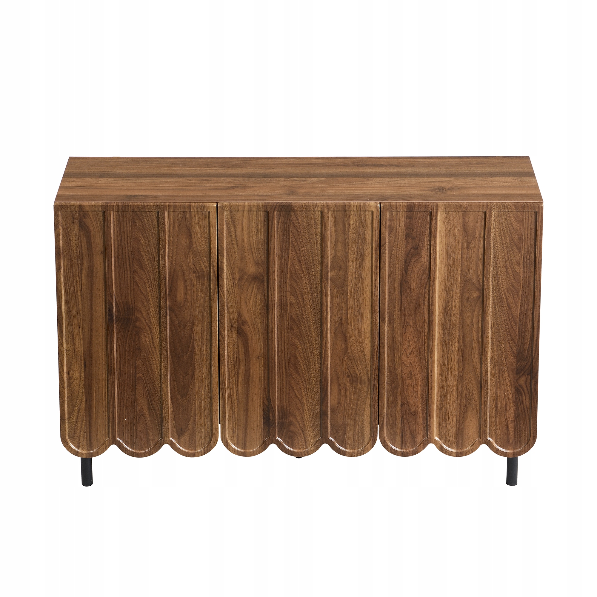 Сучасний комод кольору дерева з хвилястими дверцятами – 120x35x80 см – без ручок, регульовані полиці – місце для зберігання у вітальні, холі та їдальні