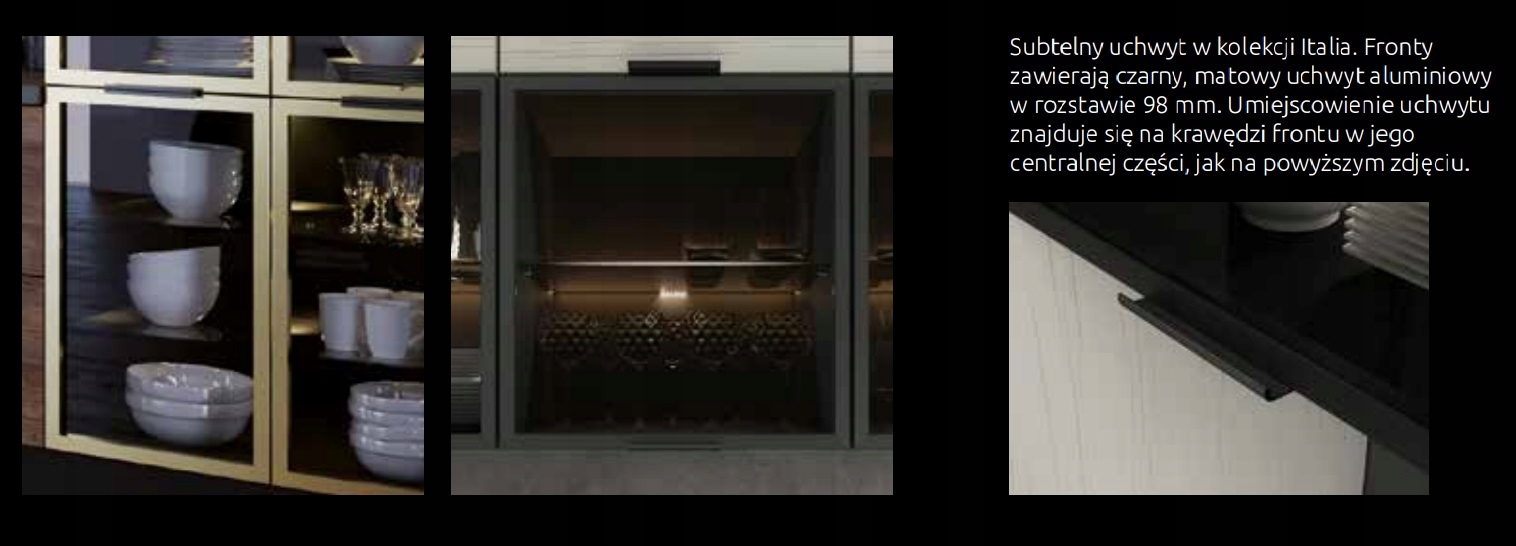 - шафи з вітринами зі скла антрацитового кольору / обладнані скляними полицями та петлями BLUM /